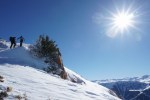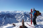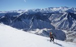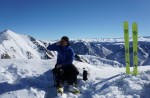 Za spoznavno turo smo se namenili na hišni (pravzaprav jurtni) vrh (2097 m), ki nam je bil po neprespani noči ravno prav za popoldanski sprehod. Po jutranjem mrazu smo bili kar presenečeni nad tem vročim vzponom v popoldanskem soncu. Presenetil nas je tudi razgled, saj je bila zaradi suhega ozračja vidljivost izredna. In presenetil nas je tudi spust po grebenu na drugo stran, kjer smo odvriskali v globokem pršiču na planoto in se za konec spet povzpeli 20 minut nazaj do jurte.