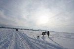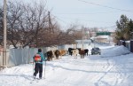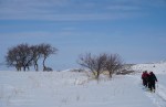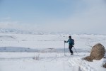 Po zasneženih cestah smo se vrnili na ravnino in nadaljevali po avtocesti, ki je bila skoraj prazna, a polna snežnih zametov. Čeprav smo se peljali po robu neskončnih step, smo že tam občutili prostranost pokrajine: nikjer nič, nobenih naselij, niti izvozov z avtoceste. Čez čas smo nato zavili kar direktno z avtoceste na neoznačene poljske ceste in se po pravem labirintu prebili do neke druge ceste, ki se konča tik pred kitajsko mejo.