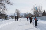 Po svoje škoda, da nismo izkoristili dneva za še eno dopoldansko turo, kljub dokaj omejenim možnostim zaradi velikih količin snega. Ampak nas je predvsem skrbelo, da bi čim prej prišli v dolino. Zato smo se po obilnem zajtrku poslovili od prijaznih oskrbnikov, našega super vodnika Sergeja in od Vasilija, ki so ostali gor še nekaj dni. Prtljago smo pustili tam in se zapeljali po soteski navzdol. V lepem vremenu in z narejenimi prehodi čez potok smo se spuščali bistveno hitreje in sčasoma dosegli odprt gričevnat svet ter končno ravnino. Tam smo nalepili pse in začeli s pohodom preko neskončnih planjav, v kanjon in na drugi strani kmalu zagledali vas Ketmen. Ceste tam niso splužene, zato smo zakorakali po glavni ulici kar na smučeh – mi smo slikali mimoidoče na konjih, oni pa nas, čudake na smučeh.