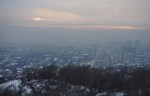 Po slastnih šašlikih za kosilo smo šli na hrib na mestom Kok Tobe, kjer smo si obetali lep sončni zahod in nočni razgled na mesto. Tam nas je malo presenetil pravi lunapark za otroke, televizijski stolp pa je zaprt za obiskovalce. Poleg tega se je popoldne pooblačilo, Almaty ima sicer tudi pogoste težave s smogom, tako da od razgledov ni bilo kaj dosti. Vseeno je bilo zanimivo videti visoke gore, ki so prav blizu. Možno je tudi bivati v hotelu v mestu in se vsak dan voziti na dnevne ture, kar je seveda bolj udobno, a gotovo manj zanimivo.