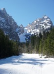 Danes na eni senčni turi v izogib žgočemu soncu. Na smuči sem stopil takoj pri avtu in po ledeni cesti do planine, kjer na travnikih za kakih 100 m zmanjka snega. Naprej skozi gozd se za vzpon še najdejo zvezni prehodi. Plazovina pod vstopom v Plazje ne ovira prehoda, vse do škrbine gre brez posebnosti, a ves čas s srenači. V senci je bilo prav hladno in ob rahlem vetru prijetno za vzpon.