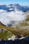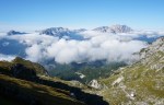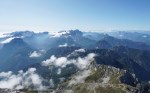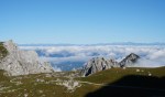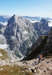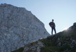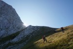 Tokratna nedelja je bila tipičen (zgodnje)jesenski dan v najlepši možni podobi. Dnevu primerno smo si zato privoščili uživaško turo na visokem nivoju. Jugozahodni raz Mangarta (IV/II-III, 400 m) je dokaj nezahtevna in nestresna smer s kratkim dostopom in širnimi razgledi. Poleg tega je opremljena s svedrovci in večinoma dobro skalo, čeprav so položnejši deli seveda bolj krušljivi.