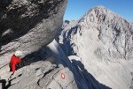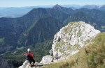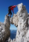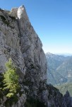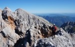 Nazaj do škrbine in začne se najlepši del vzpona, zaradi katerega sva se prej mučila v tisto strmino v gozdu. Teren je zelo razgiban in strm, ampak poplezavanje ni zahtevno, ponuja se več možnih prehodov, ves čas pa spremljajo razgledi, kot se za grebene spodobi. Grebena je za kakšnih 500 metrov, tako da užitek traja nekaj časa. Od vrha Na križu sva nadaljevala po občasno zračnem grebenu do markirane poti tik pod vrhom Kokrske Kočne.