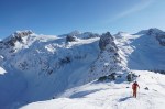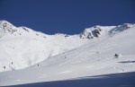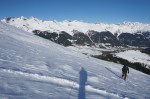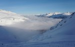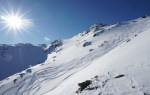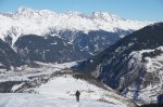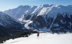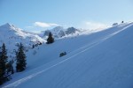 Na koncu sem si nepričakovano popravil vtis, ko sem se odločil za spust v dolino po drugi smeri. Z zgornje postaje žičnice sem prečil po grebenu in v nekaj minutah peš dosegel nek vrh (2459 m). Od tam sem sledil štirim, ki so zavili v široko senčno dolino, polno pršiča, ki je skrita pred pogledi s smučišča, v dolgem spustu pa me je pripeljala tik do našega apartmaja. Na koncu mi je bilo žal le tega, da nisem že prej odkril te možnosti.