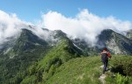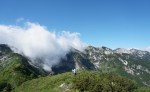 Z Lisca smo sledili poseki na grebenu do markirane poti proti Črni prsti, ki pa je tokrat nismo obiskali, saj smo se namenili v drugo smer. Zato smo kmalu za robom po brezpotju dosegli glavni greben, kjer smo ponovno stopili na markirano pot in začeli z visokim prečenjem proti zahodu. Oblaki so se medtem že razkadili, a so kasneje še večkrat z vetrom plesali po grebenu. Kar je bilo prav v redu: ni nam bilo prevroče pa še bolj zanimivo je bilo, kot če bi bilo cel dan jasno nebo.
