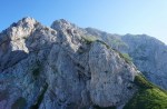 Višje se pot izteče v grapo, ki od daleč ne izgleda ravno mikavna, a se izkaže za dokaj udobno. Vmes je kratek skok, sicer pa večinoma hodiš po ne preveč krušljivih skalah. V zgornjem delu se grapa precej razširi in lahko poljubno izbiraš smer vzpona. Vzdušja pod divjimi stenami ni moč ujeti na fotografijo, treba ga je doživeti. Celotna pot do vrha grape je dopoldne v senci in vzpon je bil prav prijeten.