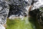 Zaradi mrzlega severnega vetra na vrhu nisem dolgo vztrajal, zato sem nadaljeval po grebenu na vzhodni vrh in se po markirani poti spustil na Srebrno sedlo. S sedla sledi malce zoprn spust po strmem in krušljivem pobočju, kjer ni prave poti, nižje pa bolj udobno po lepo uhojeni poti skozi idiličen Repov kot. Dolina je v zavetrju in sonce me je dodobra pregrelo, a to je bilo tudi v načrtu. Malo nižje me je namreč čakala glavna nagrada v obliki čudovitih tolmunov. Po takšni osvežitvi je tudi še dolga pot do doline hitro minila.