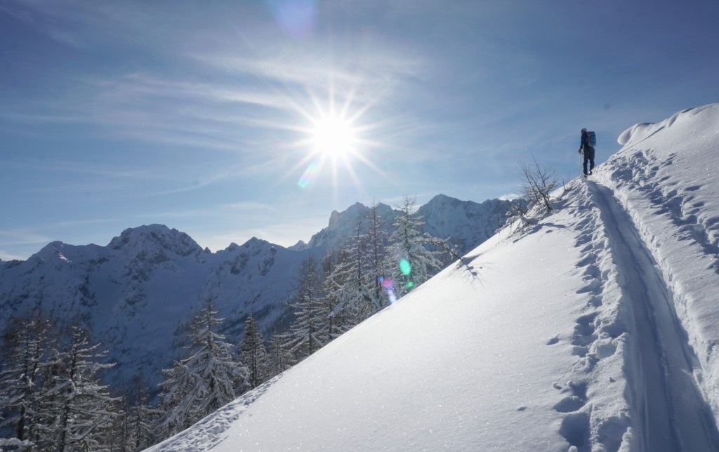 Vendar je skrb odveč: čudovita kulisa gora nad Ravensko Kočno, ki je odeta v najlepšo zimsko podobo, hitro pogreje srce (no, iskreno, tudi hitrejši korak je prispeval svoje). Prav tako je snega dovolj za udobno smuko vse do doline, na trenutke je preveč le dreves, da je kljub pršiču težko govoriti o smučarskih presežkih. Po drugi strani pa je težko najti besede o razgledih in lepotah tega koščka našega sveta …