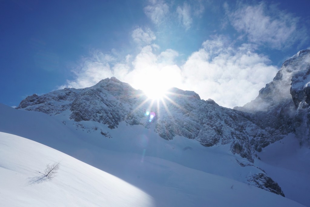 Zima 2.0 na prvi pomladni dan. Že dolgo nas ni tako zeblo, a danes je bilo vredno stisniti zobe za krasno turo v vedno čudovitem okolju – da o naravnost enkratni smuki sploh ne govorim! Pestra zasedba se nas je zbrala malo pod kmetijo Ancelj in brez odlašanja smo v polni zimski opravi zastavili hiter tempo, da bi se ogreli. V globoki dolini smo seveda še dolgo hodili v senci, greli pa so nas razgledi na mogočne stene nad nami in sveže zasnežena idila vse naokoli.