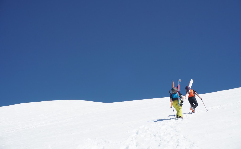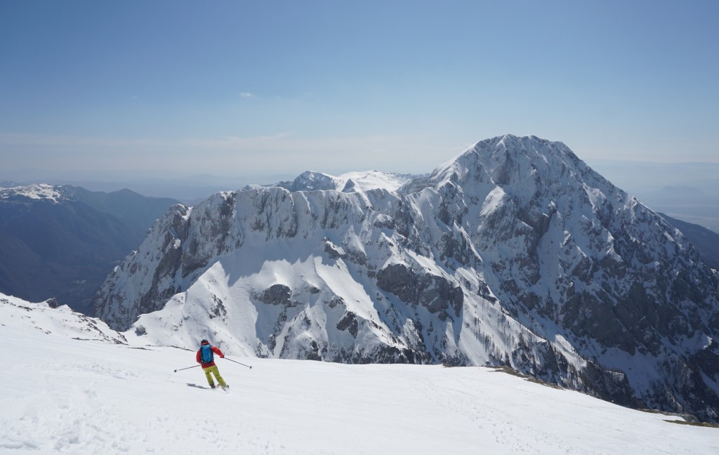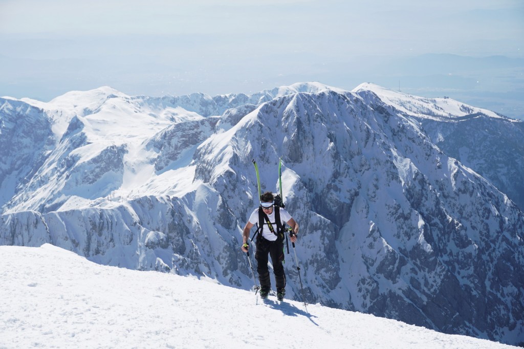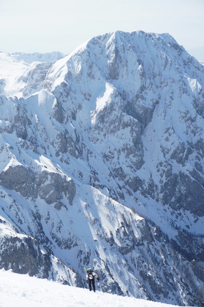 Ponovno na dereze za tisti manj prijeten del sestopa, v votlini smo se nato še zadnjič preobuli in vso zimsko opravo stlačili v nahrbtnike ter se s težkimi krošnjami opotekli nazaj v pomlad. Zadovoljstvo po tej velikopotezni turi je bilo na tak dan seveda neizmerno. Jasno je, da je za smučanje z Grintovca skoraj nemogoče ujeti optimalne razmere. Danes smo se jim precej približali. In spoštovanje do resnosti podviga se ni pri tem prav nič zmanjšalo.