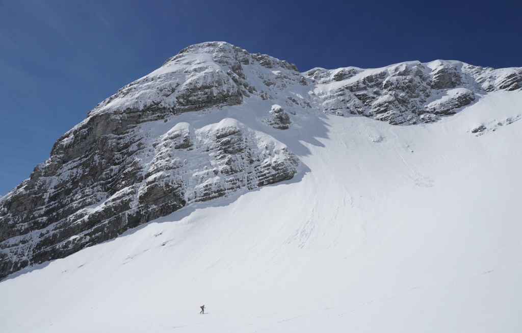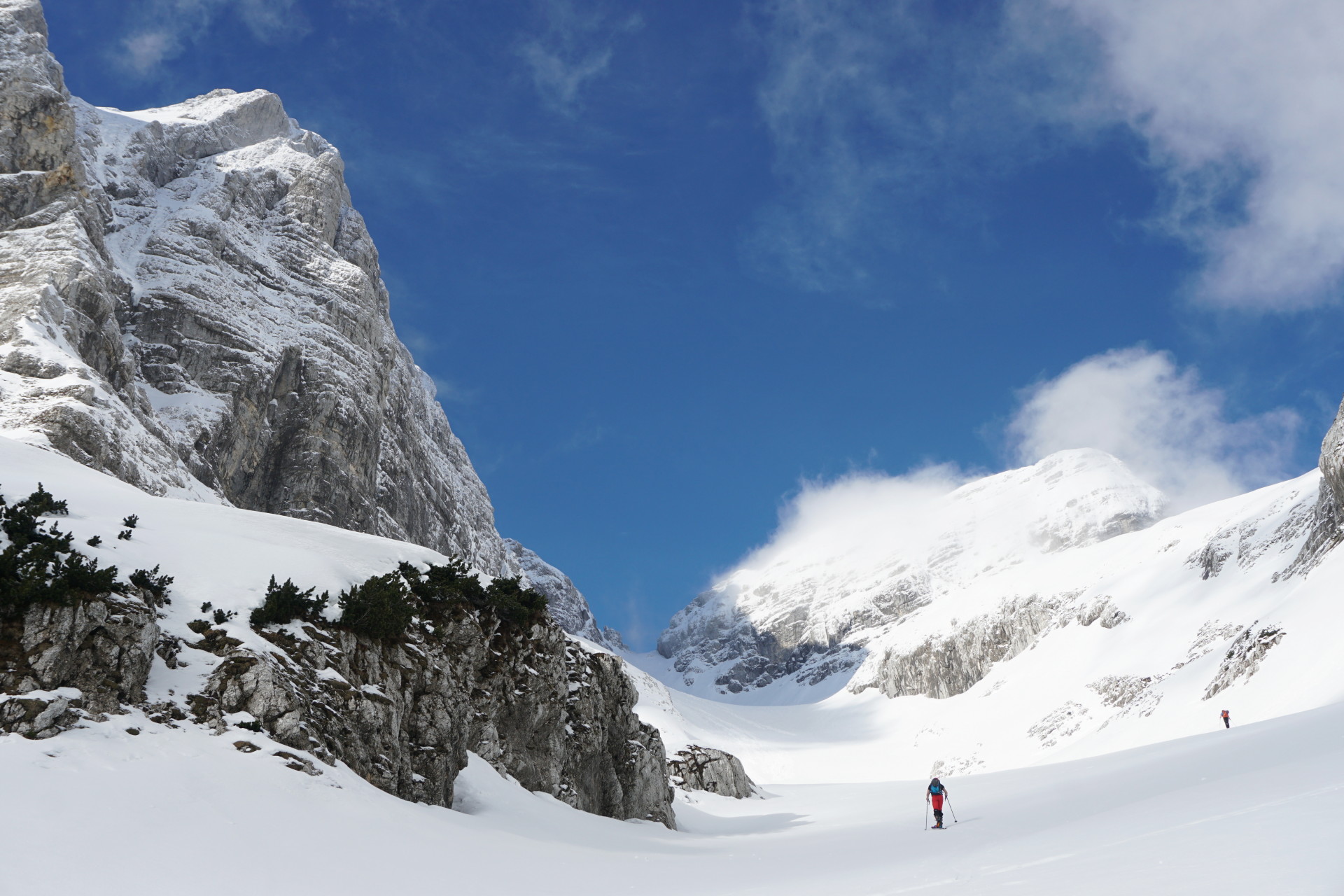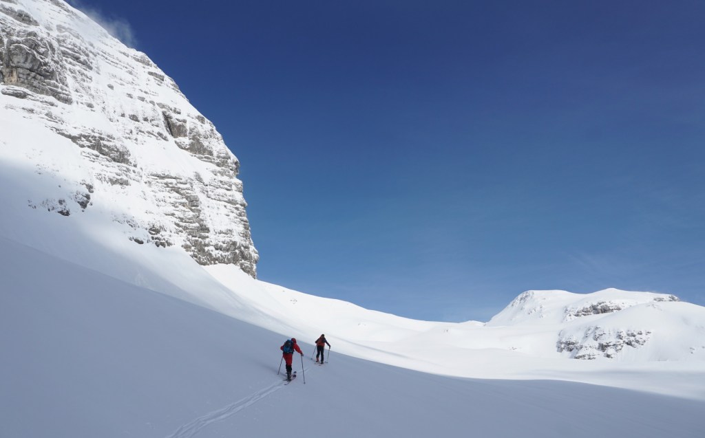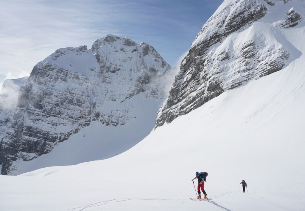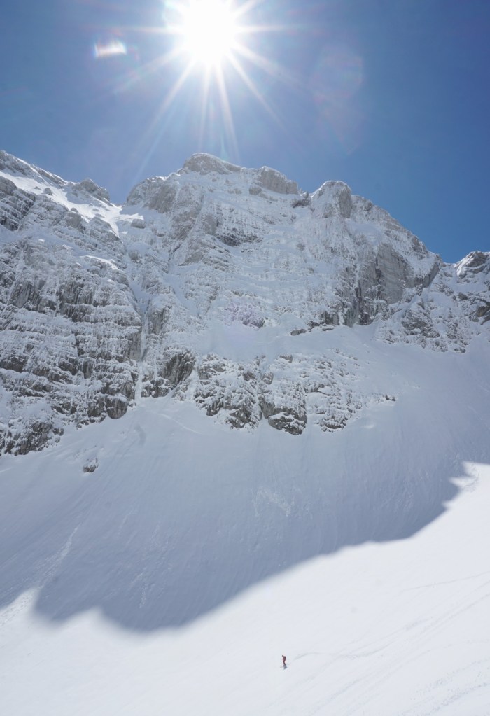 Skratka, le 14 dni po Stenarju smo šli na sosednji Križ in že spet bo objava polna navdušenja. Kako tudi ne ob tako lepem vzponu, mogočnih razgledih in uživaškem spustu. Začeli smo peš in kmalu dosegli plazovino, ki je bila zjutraj trda in udobna za vzpon. Nato še kratek čas po kopni poti in do potoka, kjer smo presedlali na smuči. Količine snega so še vedno izredne za ta čas in vzdušje je bilo precej zimsko, k čemur je pripomogla tudi dokaj nizka temperatura in občasno mrzel veter.