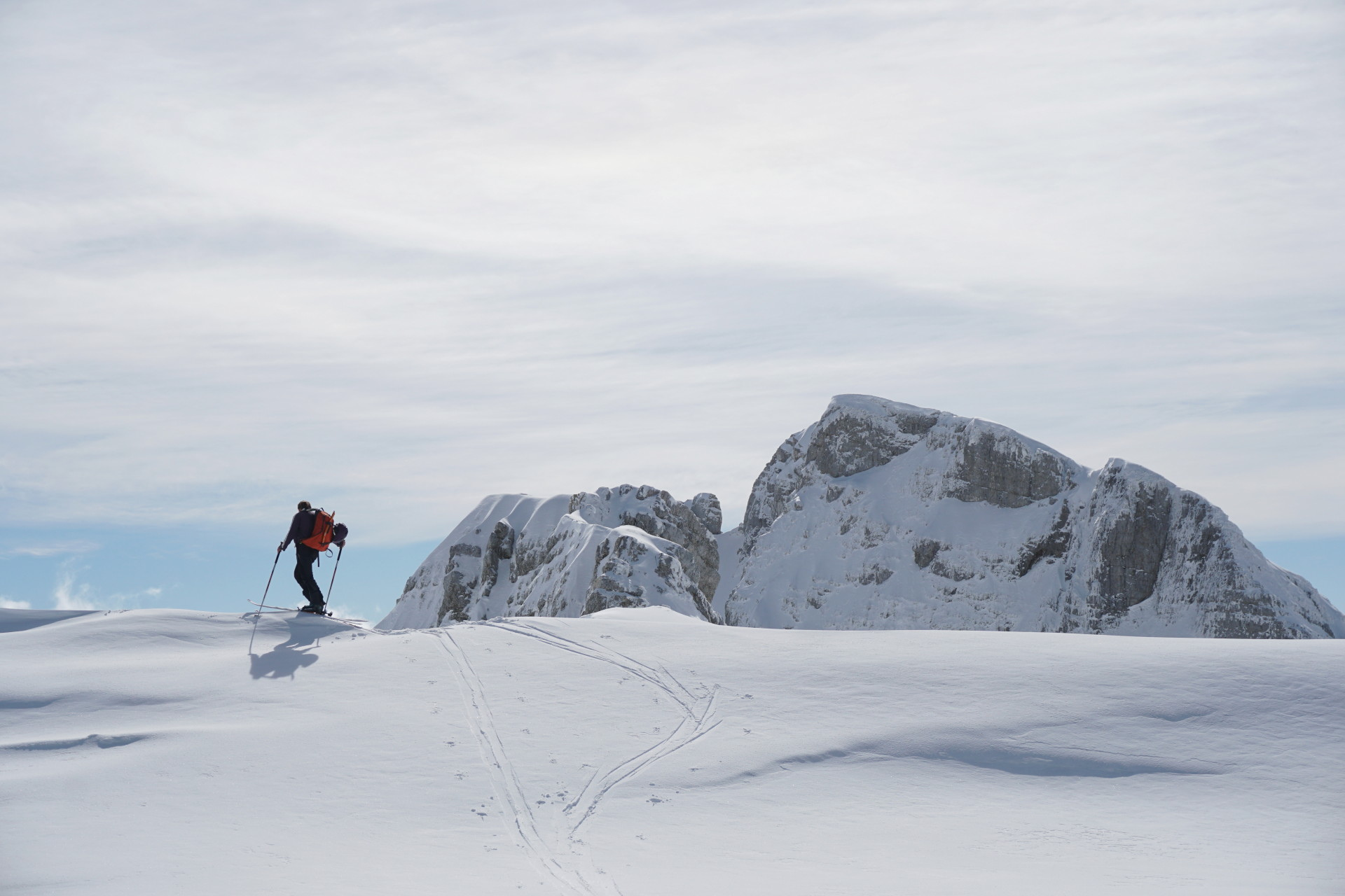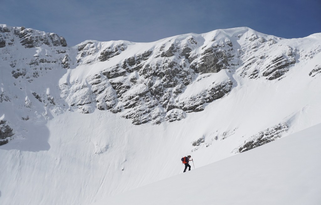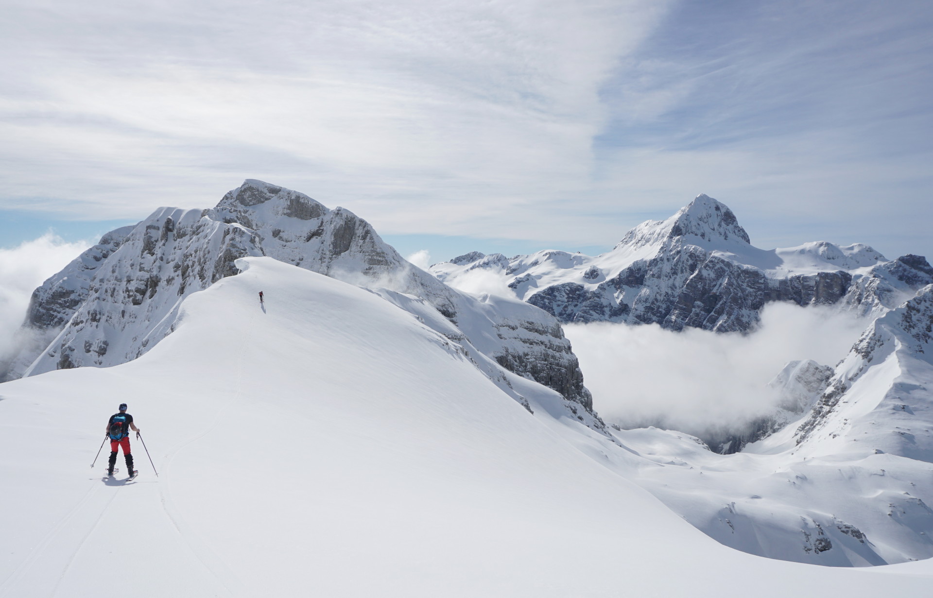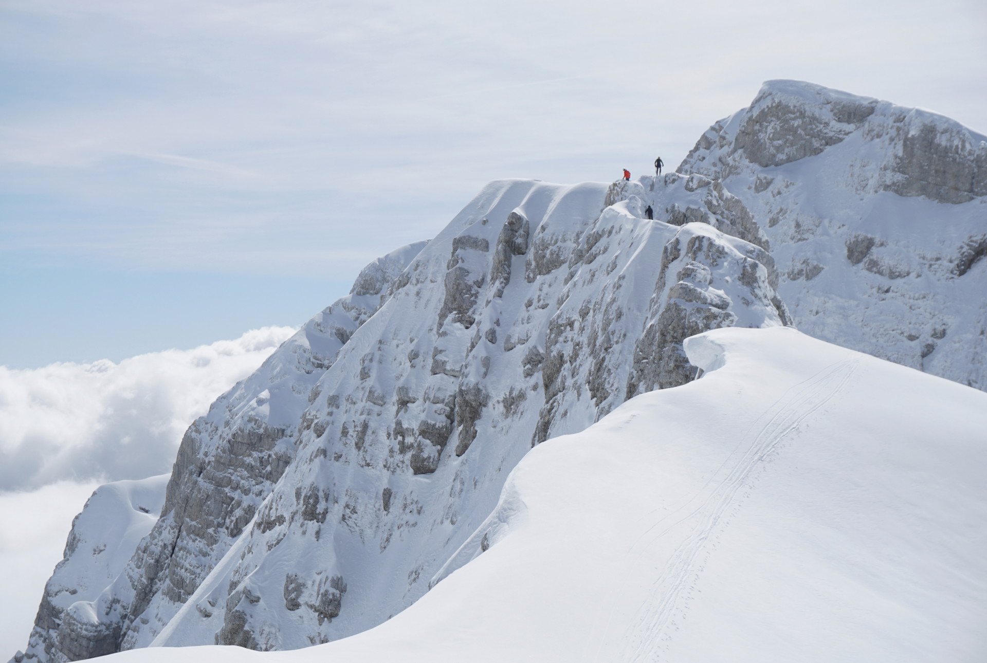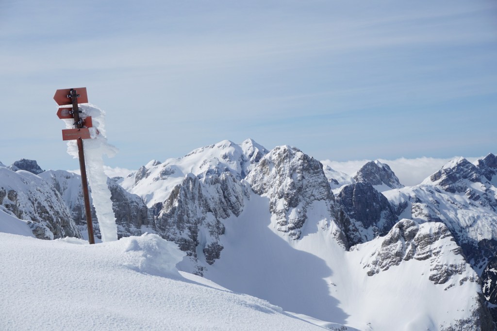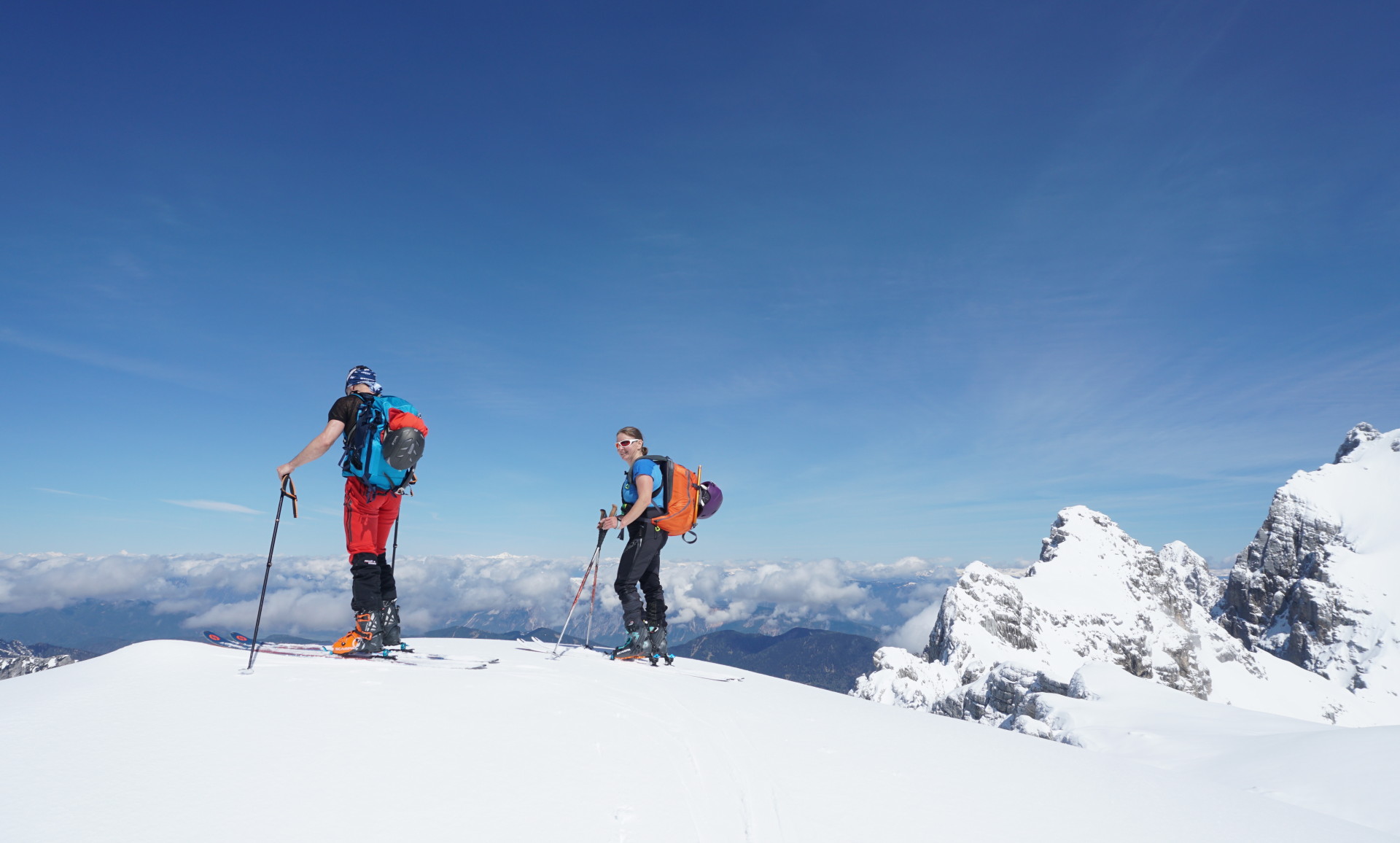 Na smučeh smo udobno prišli tik pod vrh in se seveda povzpeli še po kratkem grebenu do najvišje točke. Ker smo bili prvi, vzpon ni bil najlažji, saj je bila podlaga precej mešana in je bilo treba nekaj previdnosti. Nazaj do smuči, kjer smo si privoščili počitek z enim najlepših razgledov, nato pa navzdol. Kljub obilnim padavinam v zadnjih dneh je bila, zaradi visoke meje sneženja v petek, podlaga trda, čez pa kakšna 2 cm svežega snega. Vsled tega je bila smuka nadvse elegantna – toliko, da smo pod Stenarjem obrnili in se še enkrat vzpeli nazaj. Tokrat smo zavili desno na manj izrazit vrh Gubno, ki je le nekaj metrov nižji od Križa in nudi prijetna široka pobočja ter krasen širok razgled.