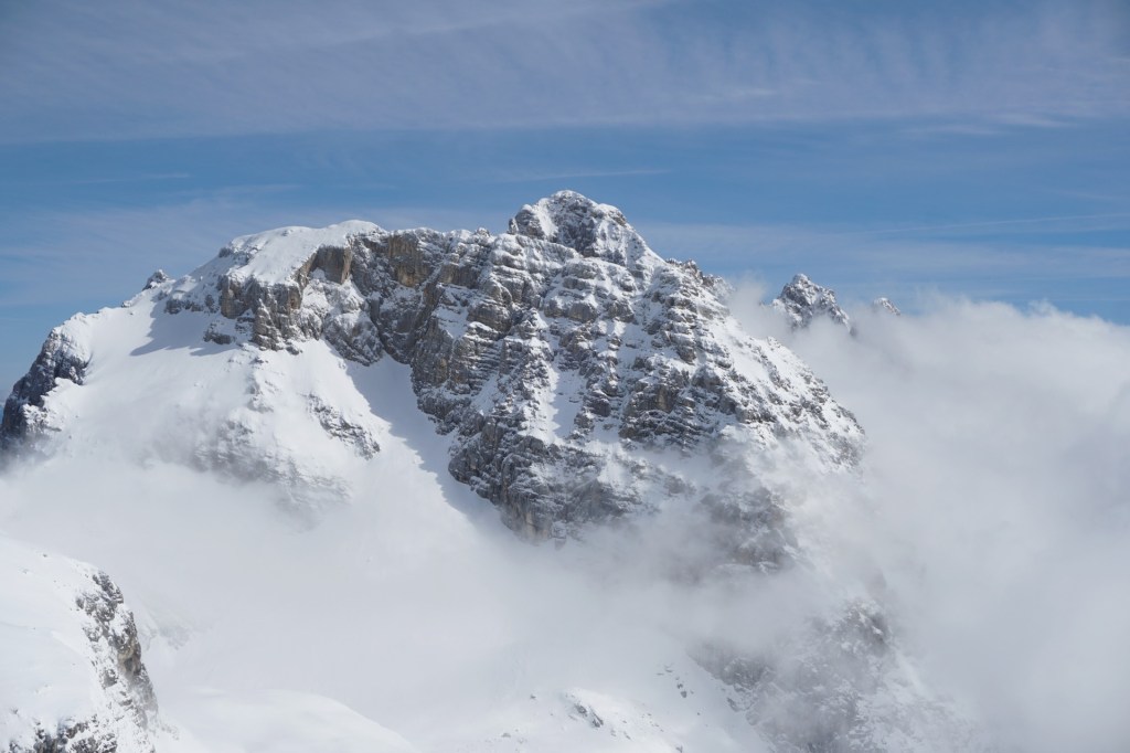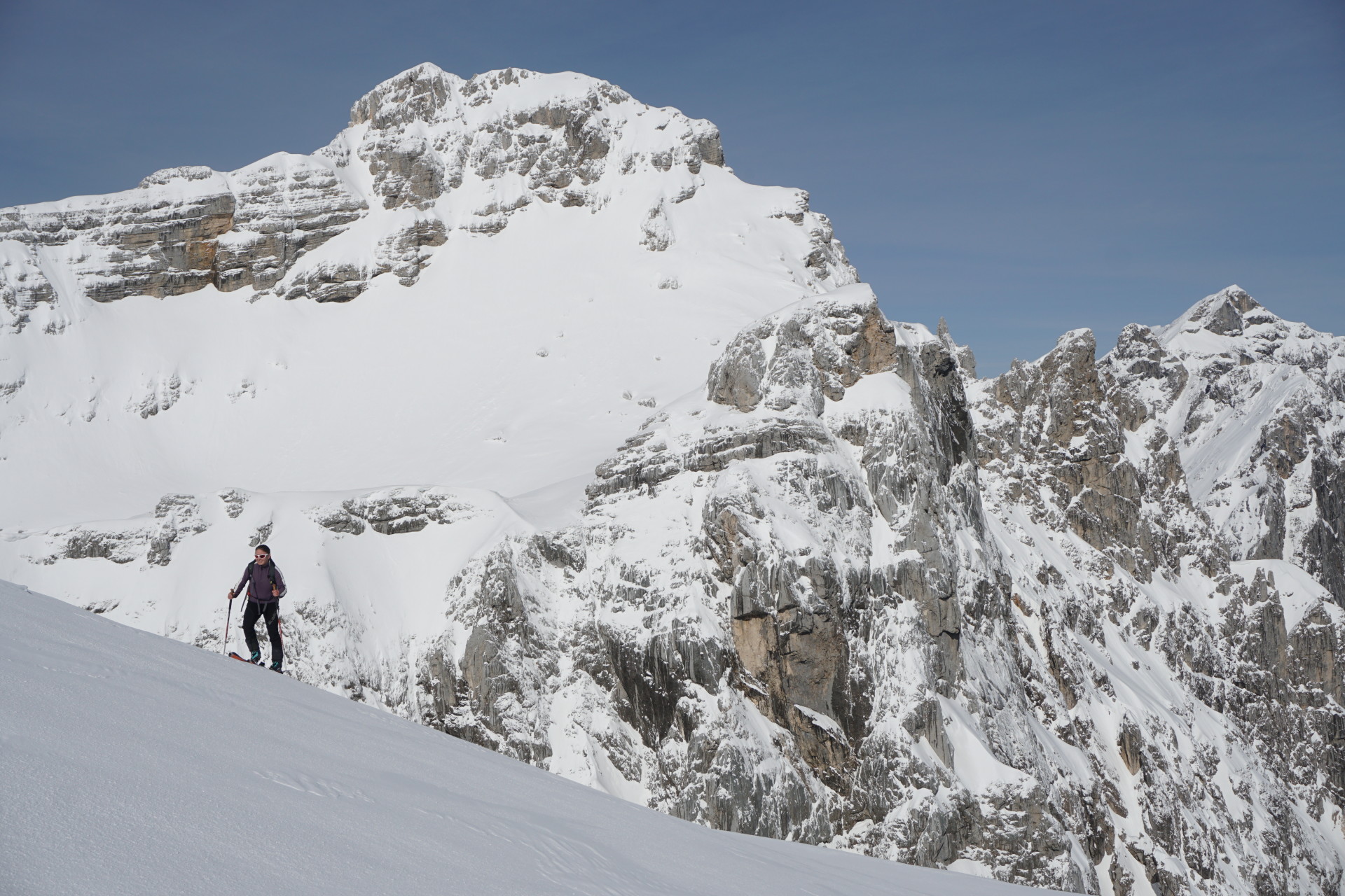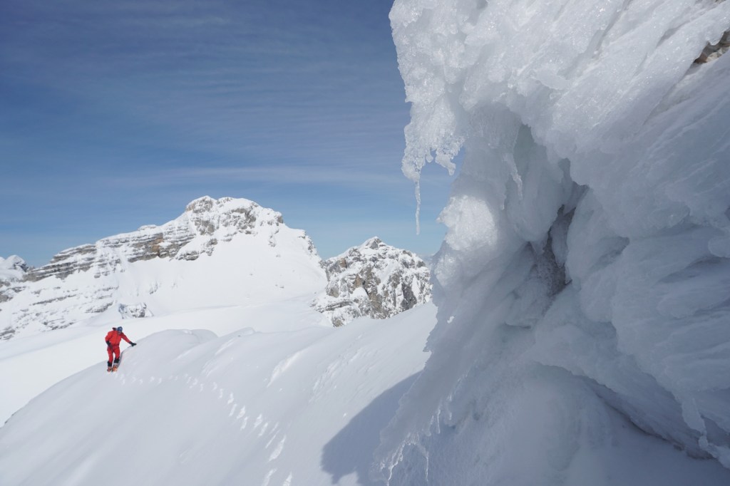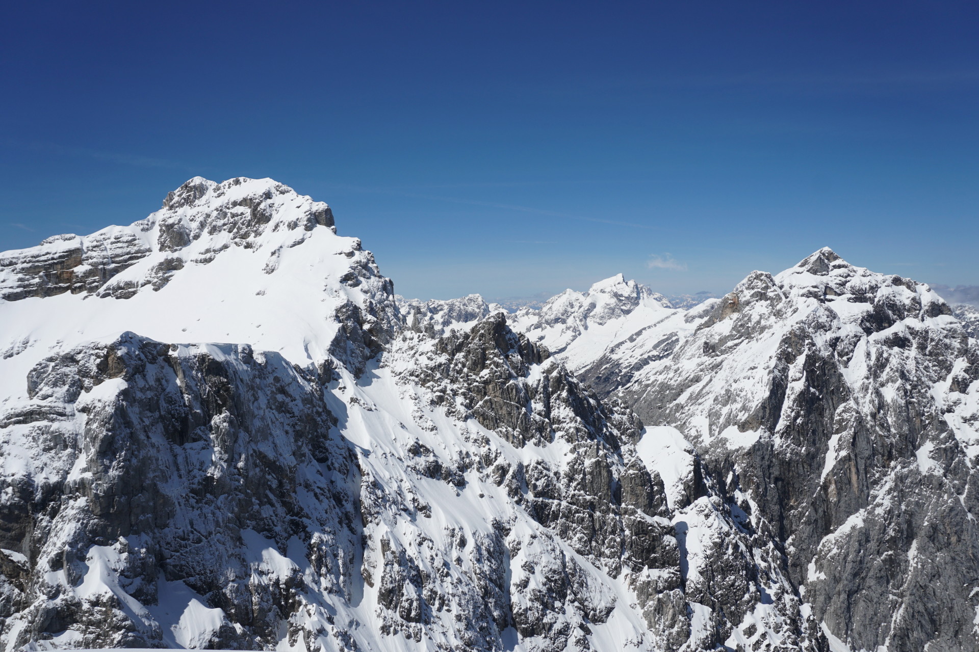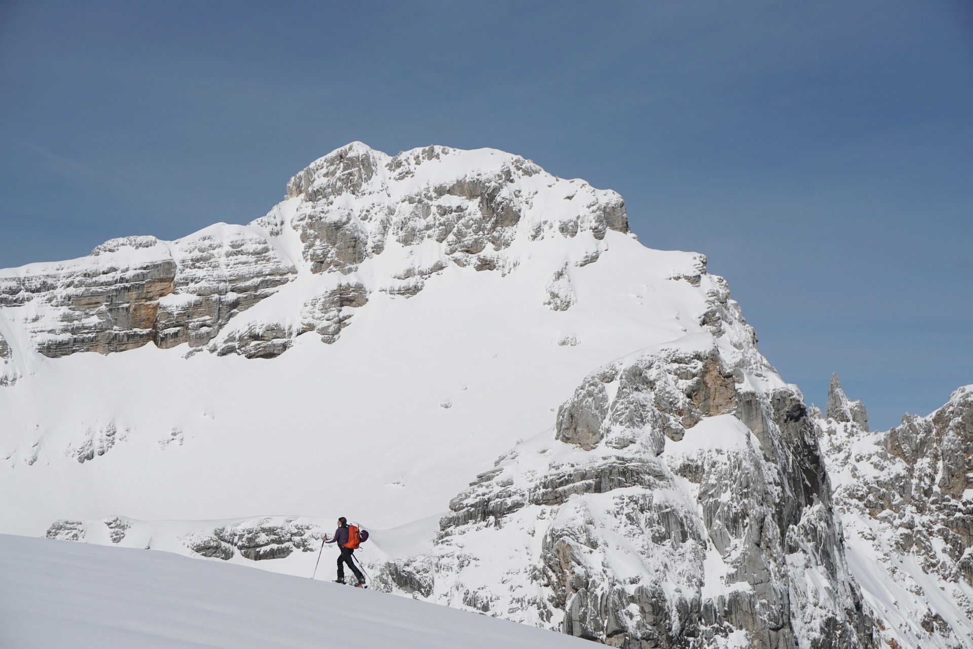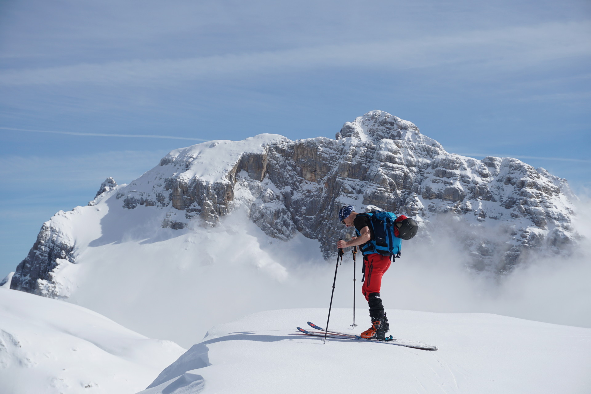 Na smučeh smo udobno prišli tik pod vrh in se seveda povzpeli še po kratkem grebenu do najvišje točke. Ker smo bili prvi, vzpon ni bil najlažji, saj je bila podlaga precej mešana in je bilo treba nekaj previdnosti. Nazaj do smuči, kjer smo si privoščili počitek z enim najlepših razgledov, nato pa navzdol. Kljub obilnim padavinam v zadnjih dneh je bila, zaradi visoke meje sneženja v petek, podlaga trda, čez pa kakšna 2 cm svežega snega. Vsled tega je bila smuka nadvse elegantna – toliko, da smo pod Stenarjem obrnili in se še enkrat vzpeli nazaj. Tokrat smo zavili desno na manj izrazit vrh Gubno, ki je le nekaj metrov nižji od Križa in nudi prijetna široka pobočja ter krasen širok razgled.