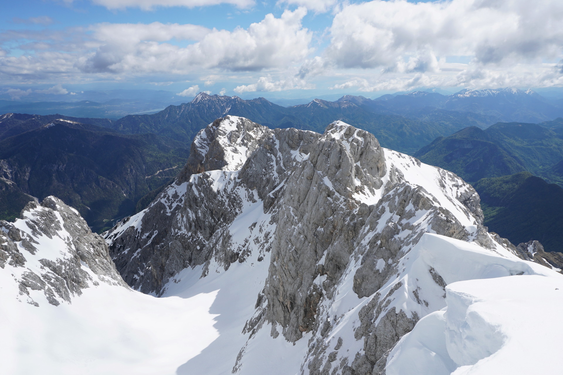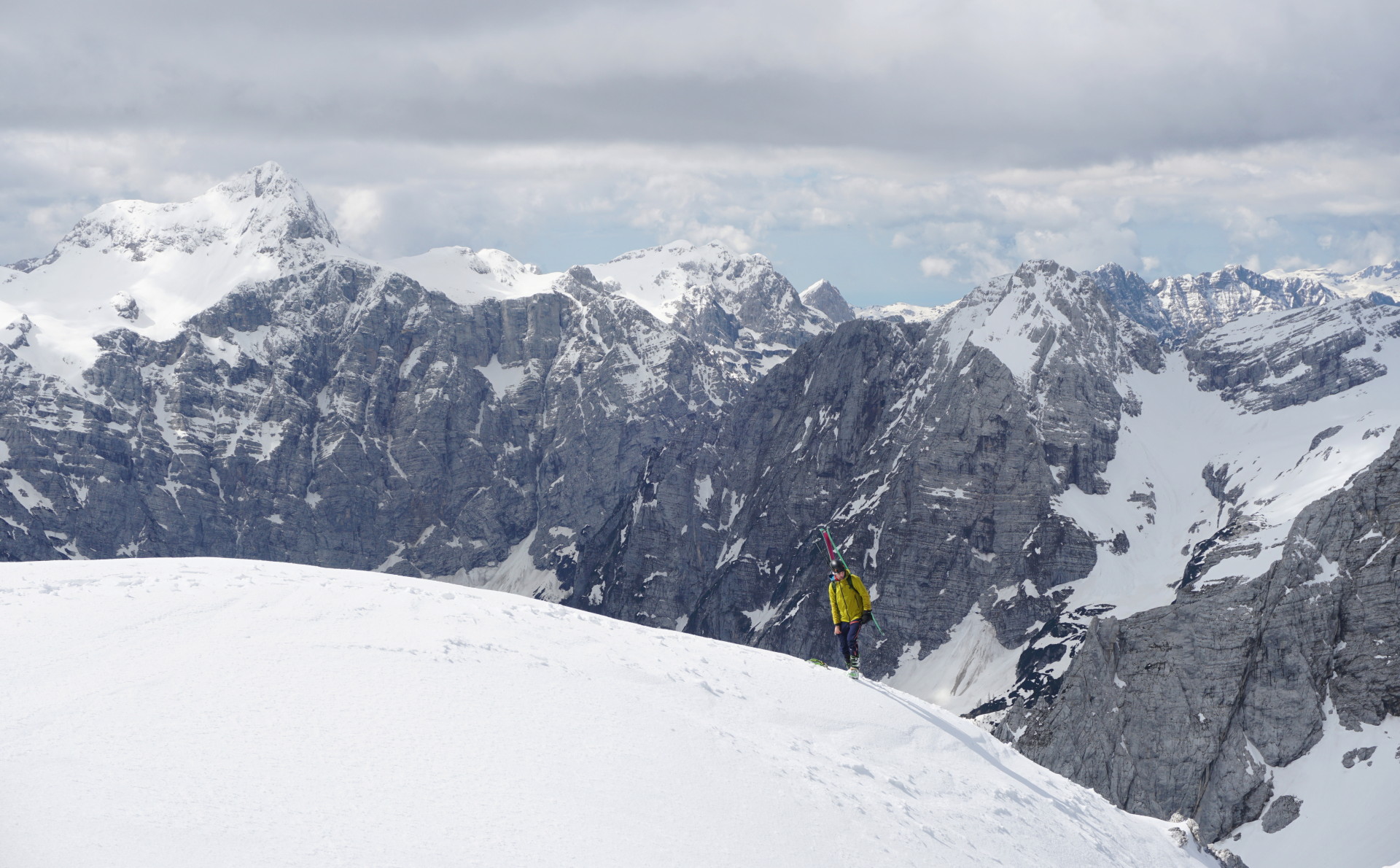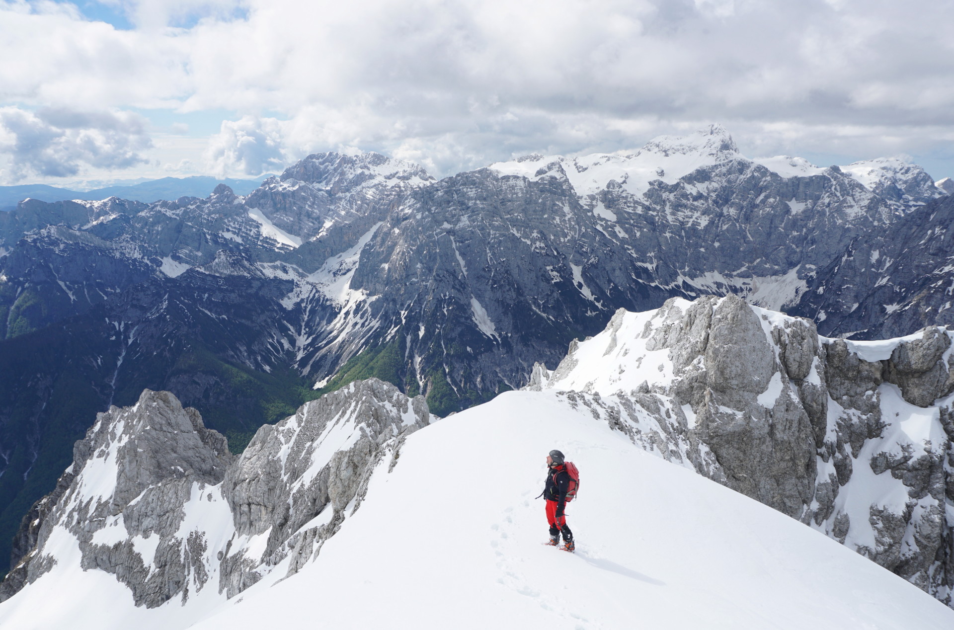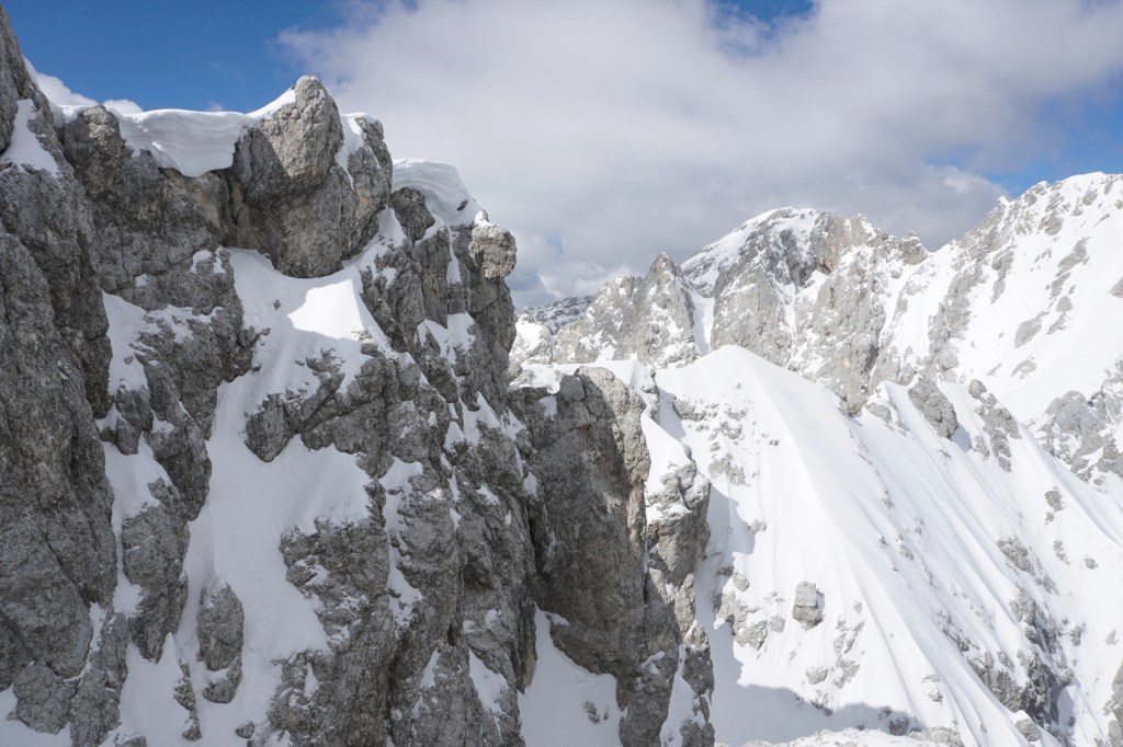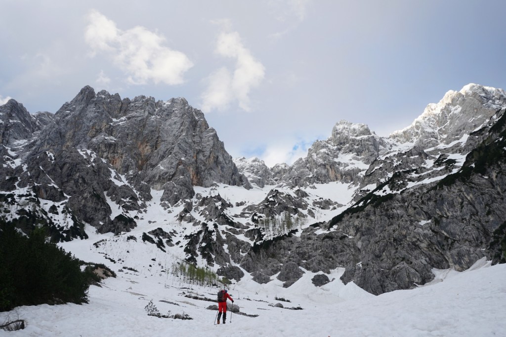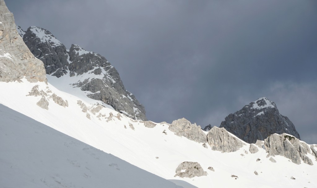 Še ena pomladanska klasika, le da danes v zimskih razmerah. To, da je v hribih še sneg, ni več posebna novica; v zadnjih dveh mesecih se zdi bolj neobičajna novica lepa (ali vsaj lepša) vremenska napoved. Z Džanijem sva tako danes izkoristila enega redkih dni v maju, ki je obetal primerno vreme za to dolgo in naporno turo v osrčju martuljške divjine. Po nenehnem sneženju, pomanjkanju sonca in nizkih temperaturah se sneg sploh ne utegne predelati, tako da razmere niso bile ravno ugodne in tudi sonca je bilo manj kot sva upala. Da sploh ne govorim o mrazu in mrzlem vetru! Pa kljub temu te takšna tura težko pusti ravnodušnega, saj poteka v zares veličastnem delu naših čudovitih zasneženih Julijcev.