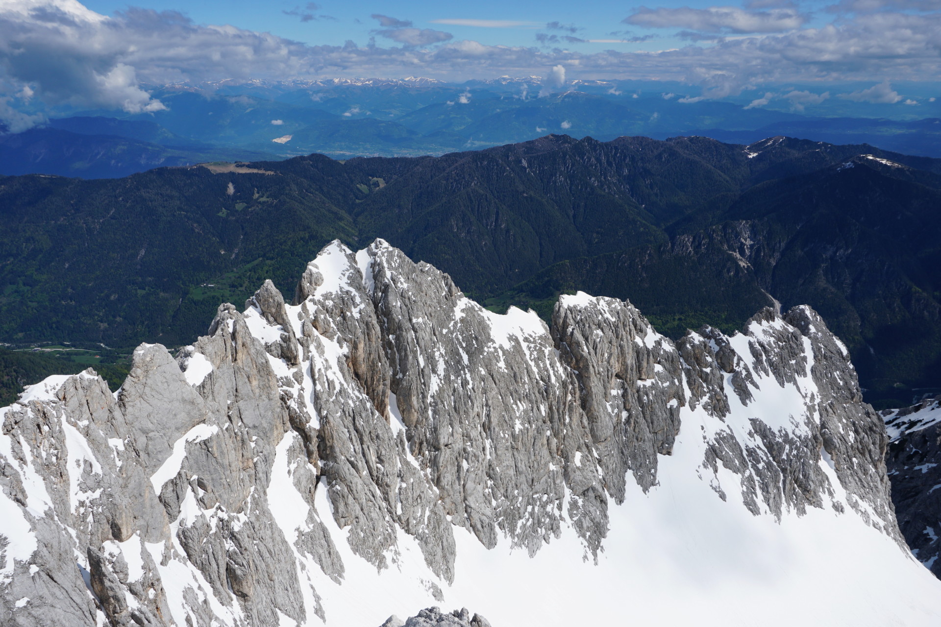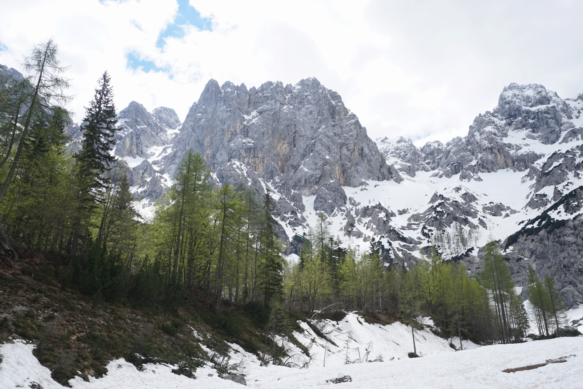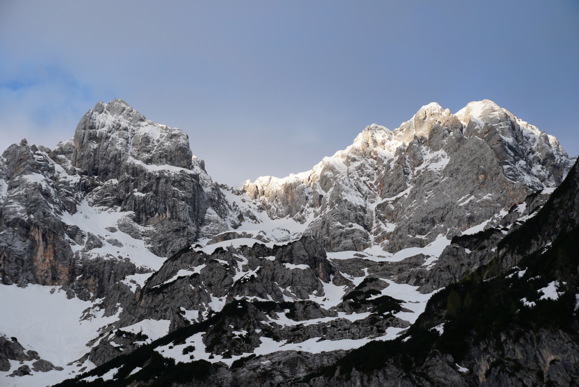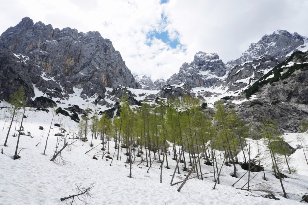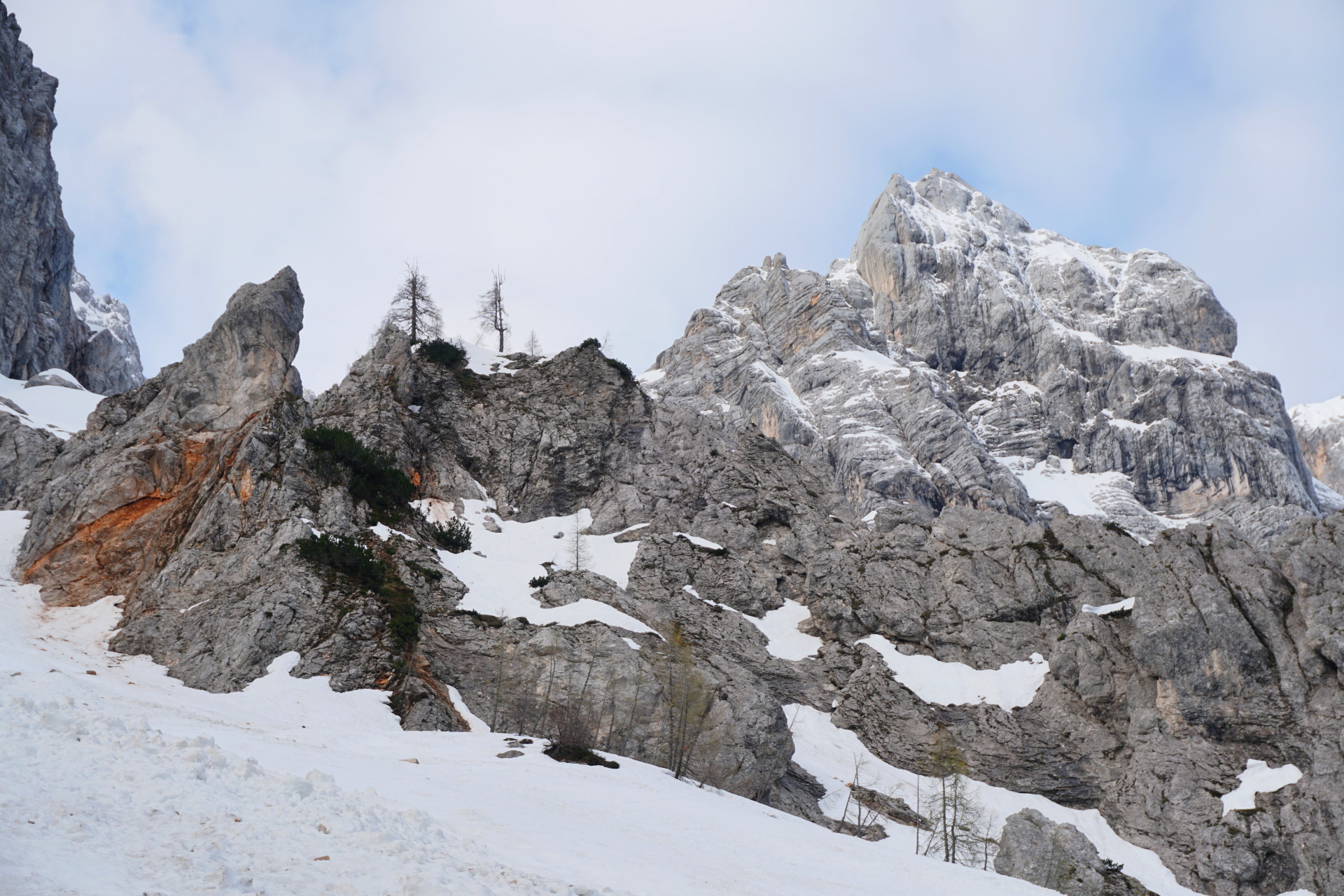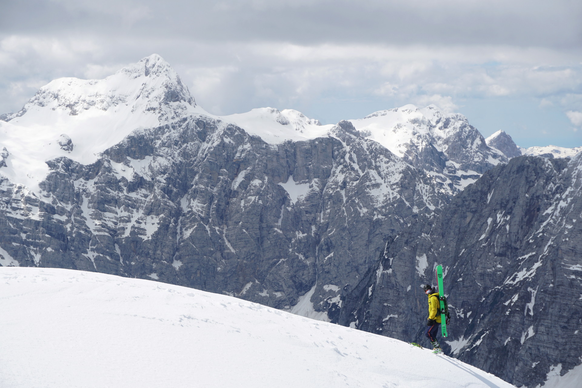 Še ena pomladanska klasika, le da danes v zimskih razmerah. To, da je v hribih še sneg, ni več posebna novica; v zadnjih dveh mesecih se zdi bolj neobičajna novica lepa (ali vsaj lepša) vremenska napoved. Z Džanijem sva tako danes izkoristila enega redkih dni v maju, ki je obetal primerno vreme za to dolgo in naporno turo v osrčju martuljške divjine. Po nenehnem sneženju, pomanjkanju sonca in nizkih temperaturah se sneg sploh ne utegne predelati, tako da razmere niso bile ravno ugodne in tudi sonca je bilo manj kot sva upala. Da sploh ne govorim o mrazu in mrzlem vetru! Pa kljub temu te takšna tura težko pusti ravnodušnega, saj poteka v zares veličastnem delu naših čudovitih zasneženih Julijcev.