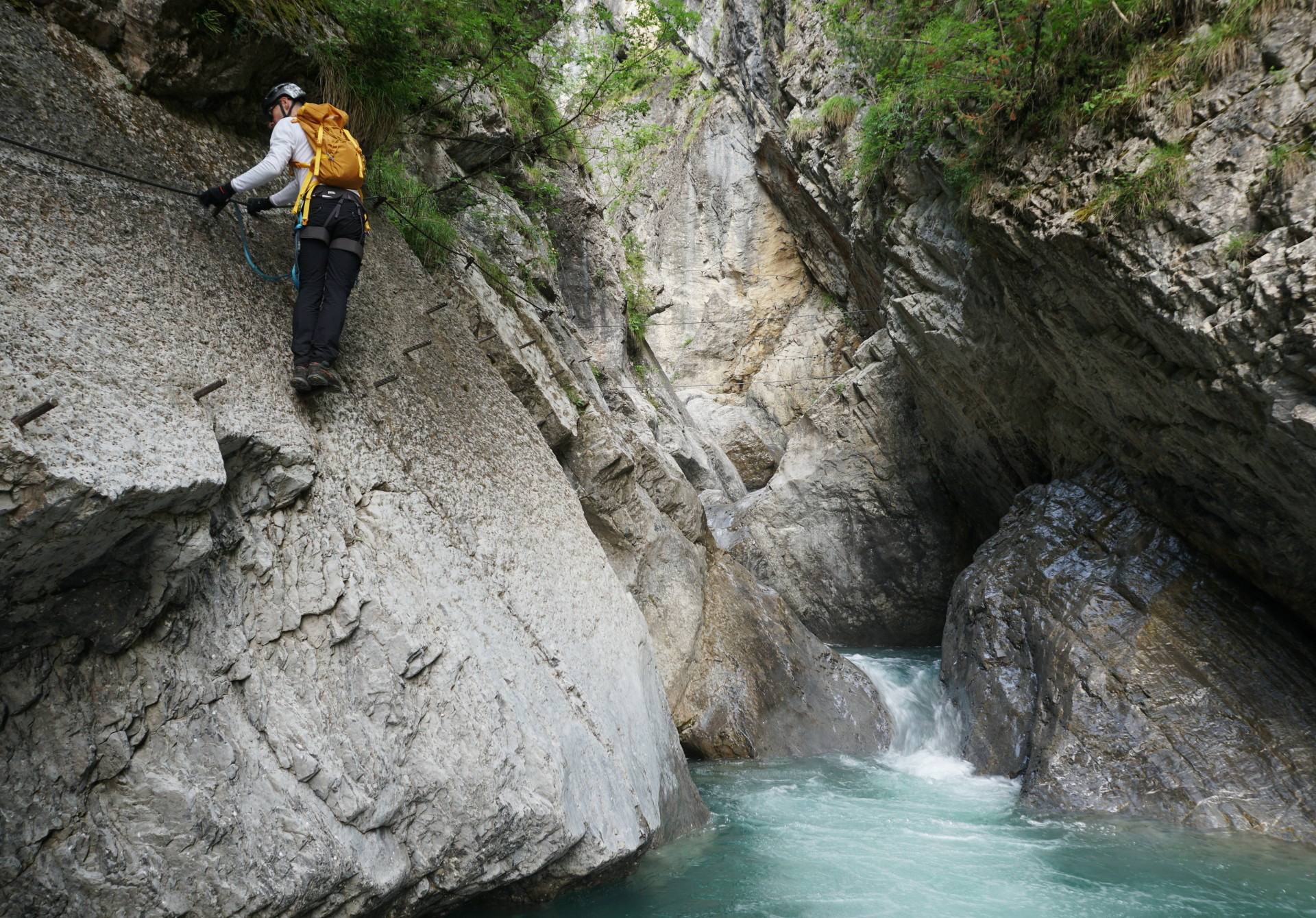 V nedeljo se je že zjutraj začelo oblačiti, zato smo se namenili v sotesko Pirknerklamm, skozi katero poteka ferata težavnosti C. Dostop ob potoku je kratek, nato sledi kakšnih 45 minut plezanja nad potokom in mimo nekaj lepih slapov v globoko vrezani soteski. Z vrha je le še kratek sestop nazaj do izhodišča. Vse skupaj bolj kratko, ampak vsekakor upam, da še večkrat obiščem te lepe kraje.