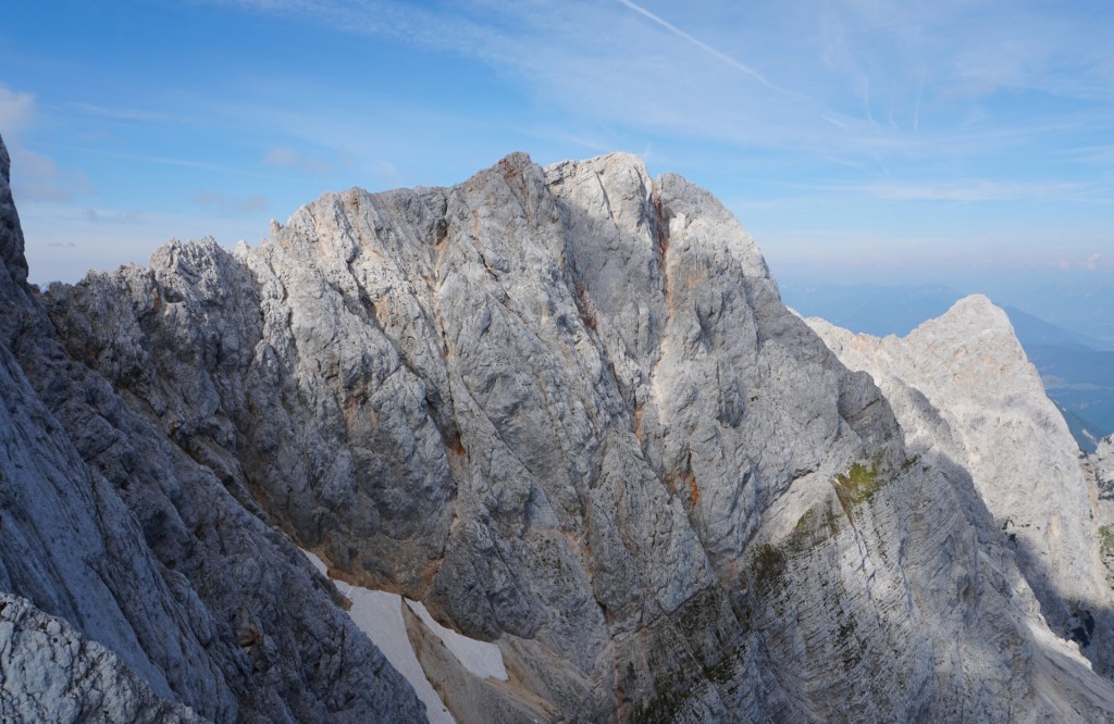 Kljub temu sva brez težav dosegla vrh in si privoščila zasluženo malico. Sestop po običajni smeri prav tako ni čisto enostaven do melišč pod Šplevto. Sva bila pa zato po tistih daljnosežnih meliščih ekspresno v Vratih, kjer so naju pobrali Anže, Dean in Dule. Po osvežitvi v ledeni Bistrici in prevozu do najinega avta je manjkalo le še kosilo in tura je bila uspešno zaključena. Navkljub vsem naporom in neprijetnostim bo gotovo ostala v lepem spominu – tudi zato, ker je ne rabiva več ponoviti.