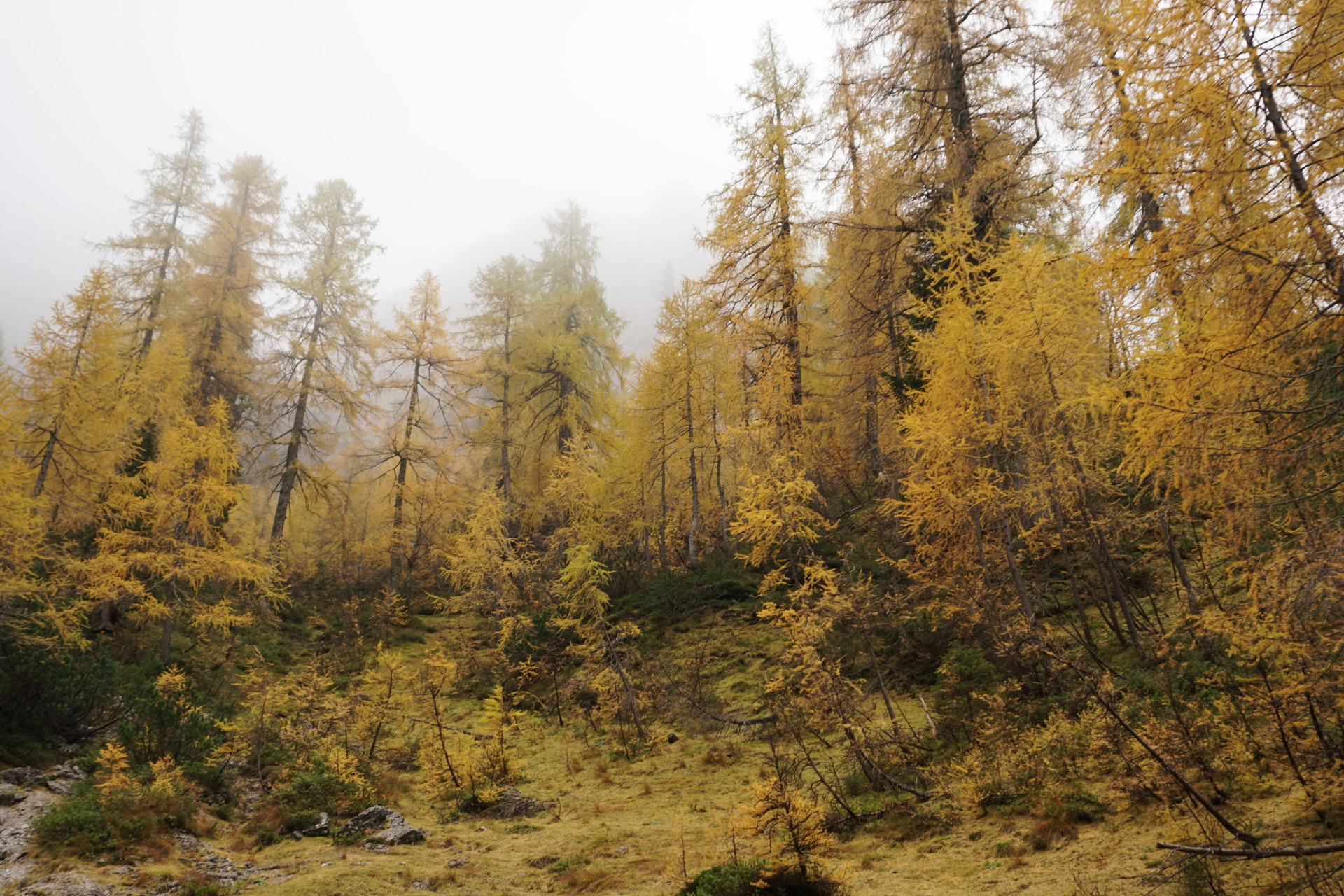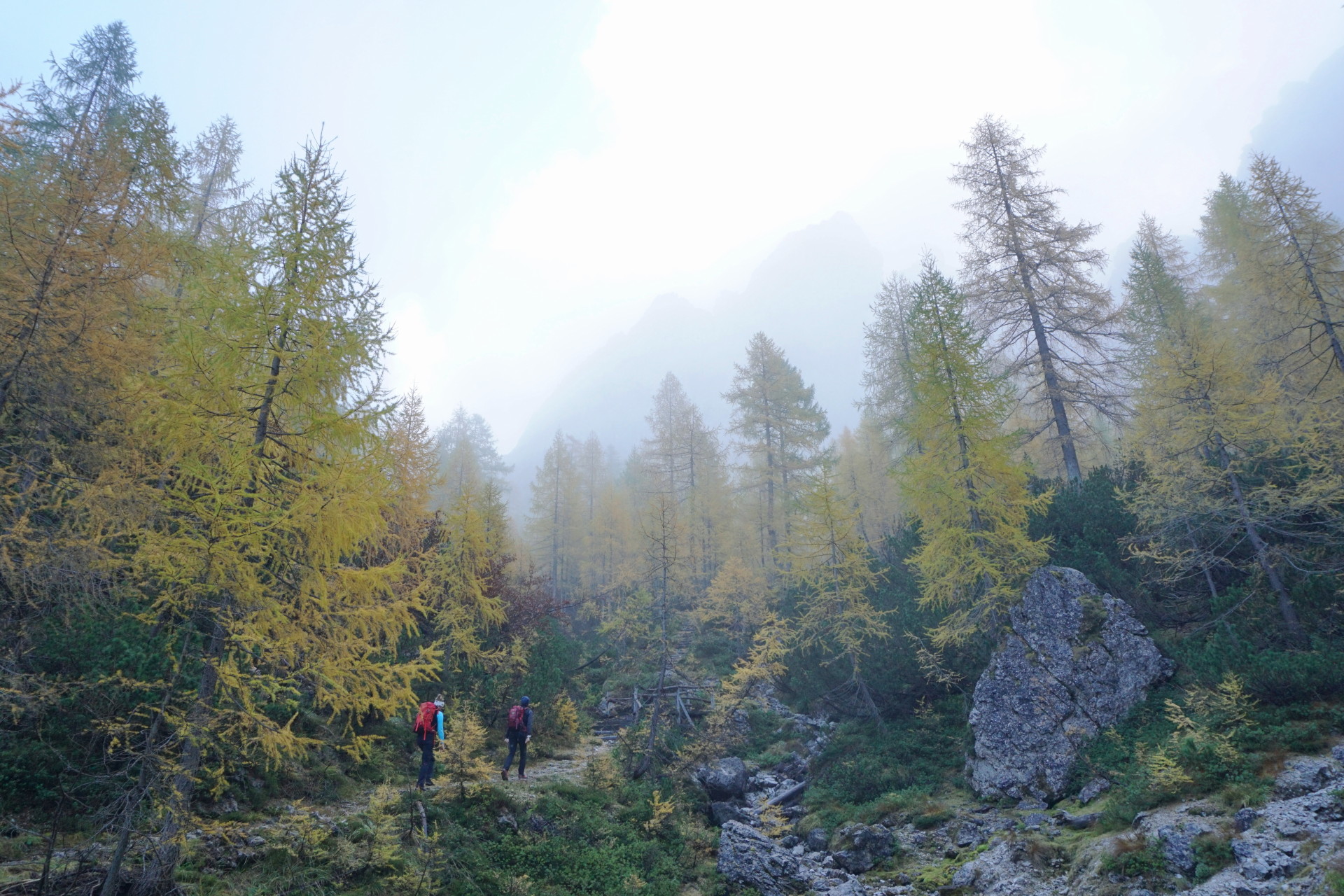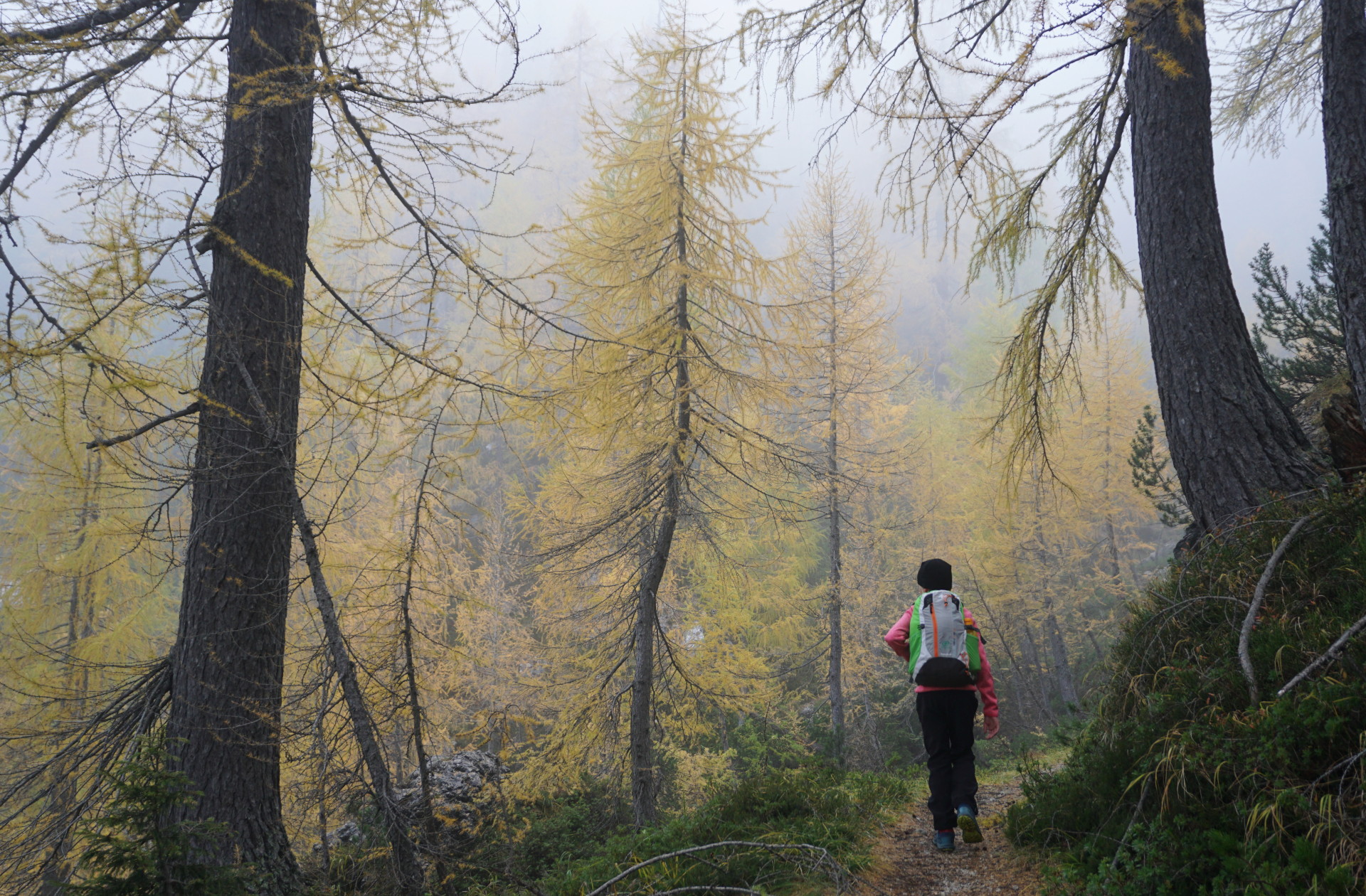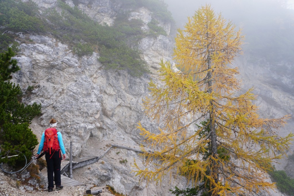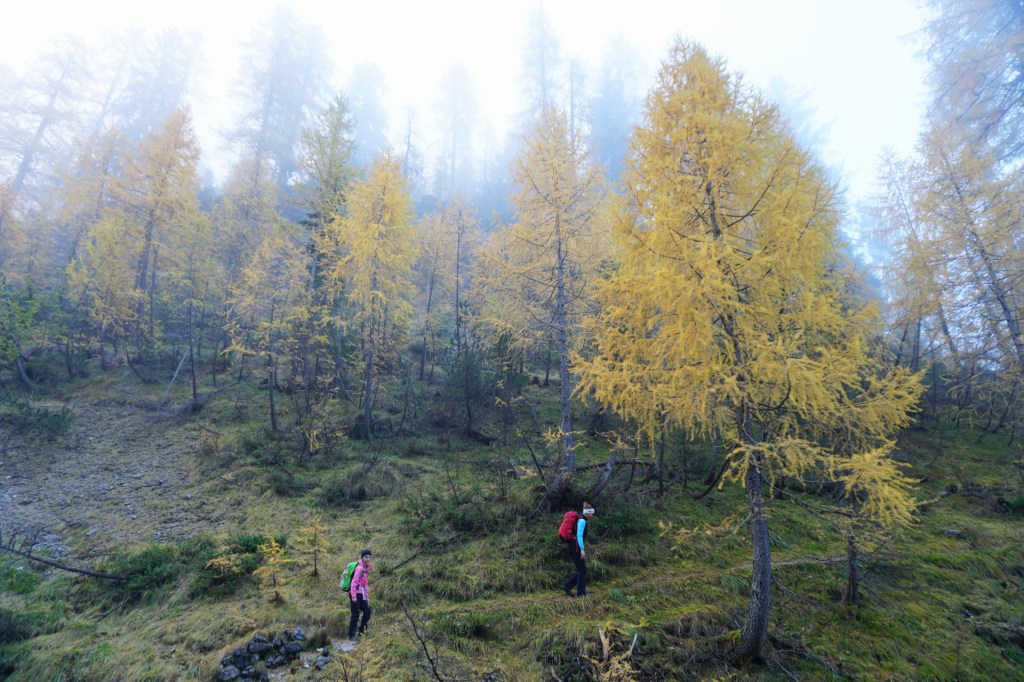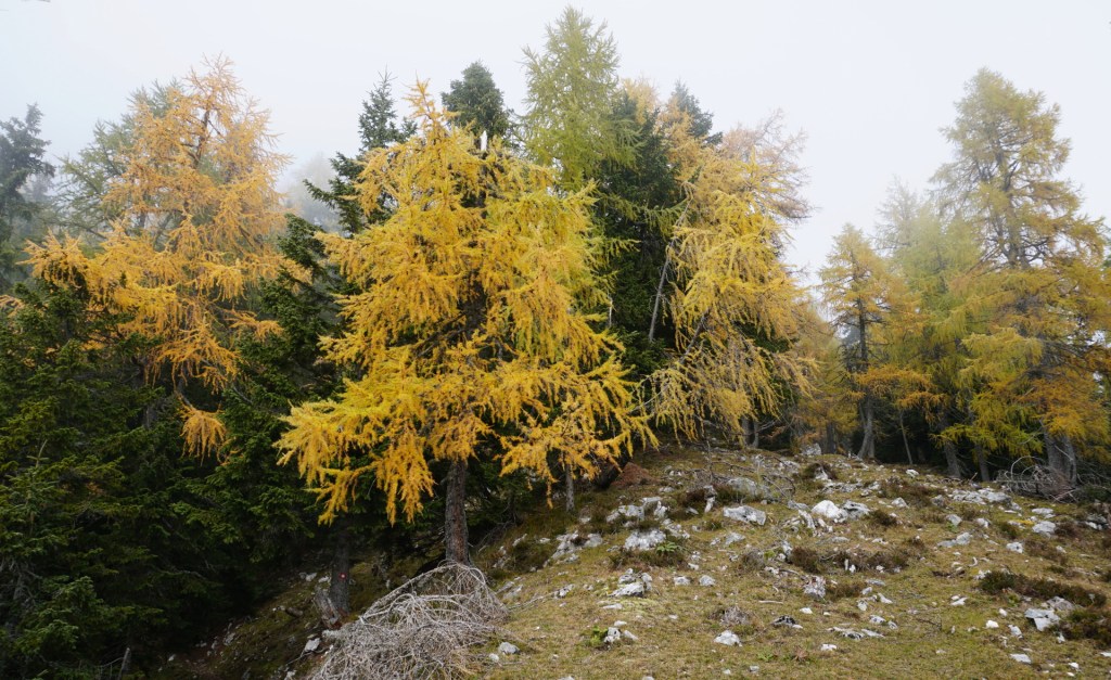 Začeli smo pri spodnjem jezeru in kar takoj zagrizli po strmi, a udobni poti skozi gozd. Redki tu hodijo, čeprav ne razumem zakaj, saj gre za razgibano in zelo razgledno pot (seveda smo v megli te razglede zgolj slutili). Po visokem prečenju smo dosegli dolinico pod Ponco, ki je nedvomno med bolj idiličnimi kotički, kar jih poznam. Tam smo tudi v megli uživali v jesenskih barvah, na vrhu Male Ponce pa smo dočakali le krajšo luknjo v oblakih preden smo sestopili mimo zavetišča in do zaprte koče Zacchi ter nazaj v dolino. Ko smo dosegli jezeri, se je začelo jasniti in smo imeli vsaj nekaj sonca na sprehodu okoli obeh jezer do izhodišča. Škoda za pomanjkanje razgledov, ampak saj se gotovo še vrnemo.