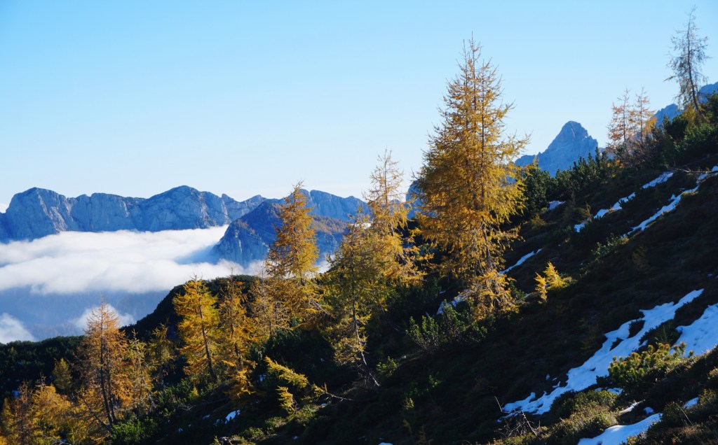 V nedeljo sem se na pot odpravil šele sredi dneva, zato sem rabil ne predolgo in preverjeno turo. Krožna pot iz Vrat na Sleme je v jesenskem času ena prvih idej in tudi tokrat se je izkazala za pravo izbiro. Brez zadržkov lahko rečem, da je bil to najlepši dan v gorah letos in na take dni imam najraje že znane poti, da se lahko posvetim uživanju in doživljanju lepot, ki jih ponuja narava.