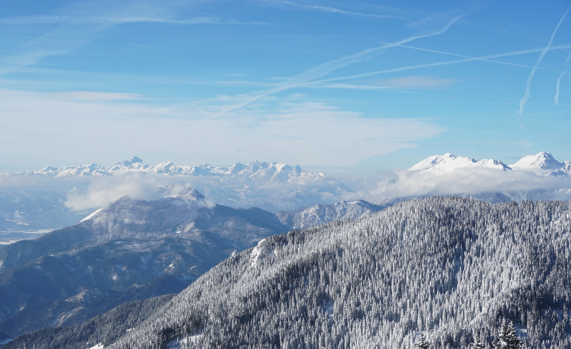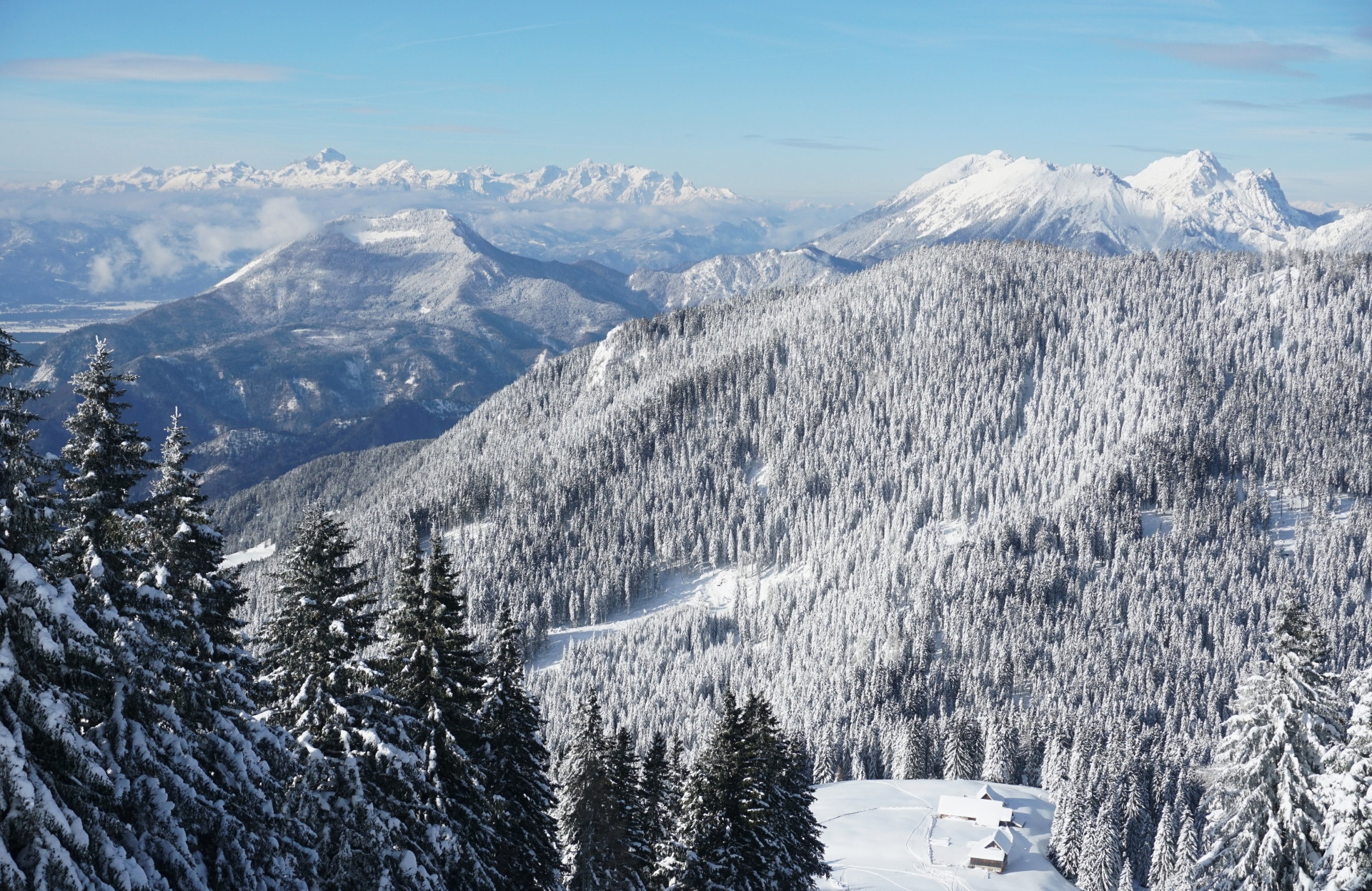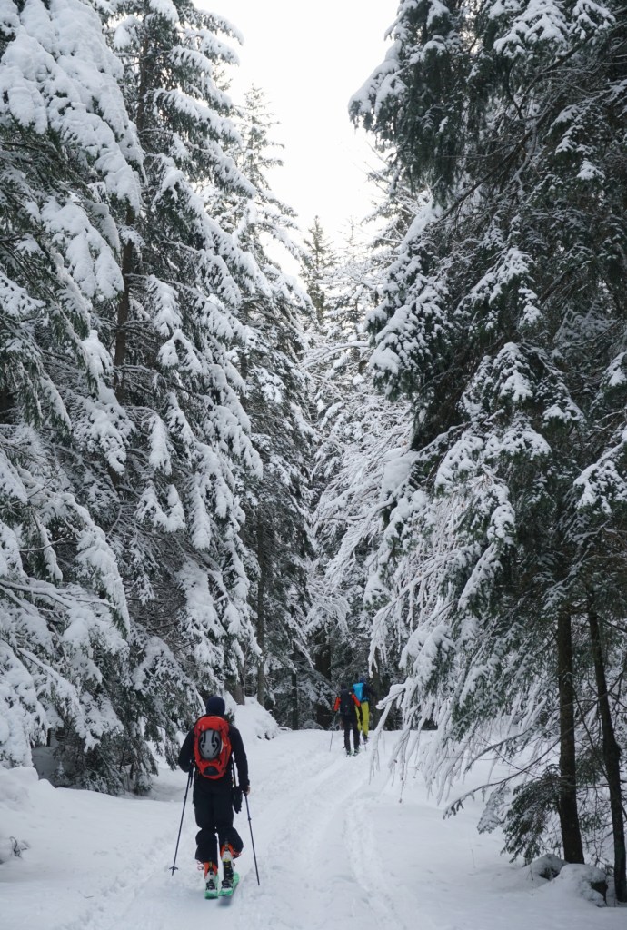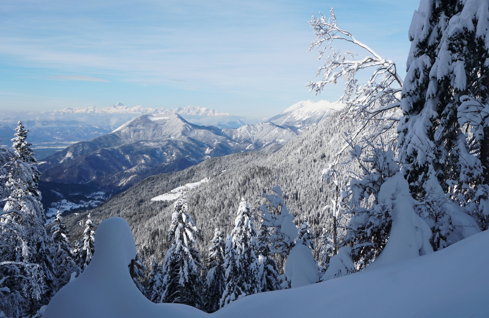 Povzpeli smo se mimo Rekarja, v gozdu spodaj je snega še premalo za smuko. Že malo višje je gozd dobil povsem zimsko podobo in smo uživali v hoji skozi snežno idilo. Tudi vreme je bilo lepše od pričakovanj, sonce je idilo spremenilo v pravljico, vetra skoraj nič, temperatura pa decembru primerna, da je prijal vroč čaj.