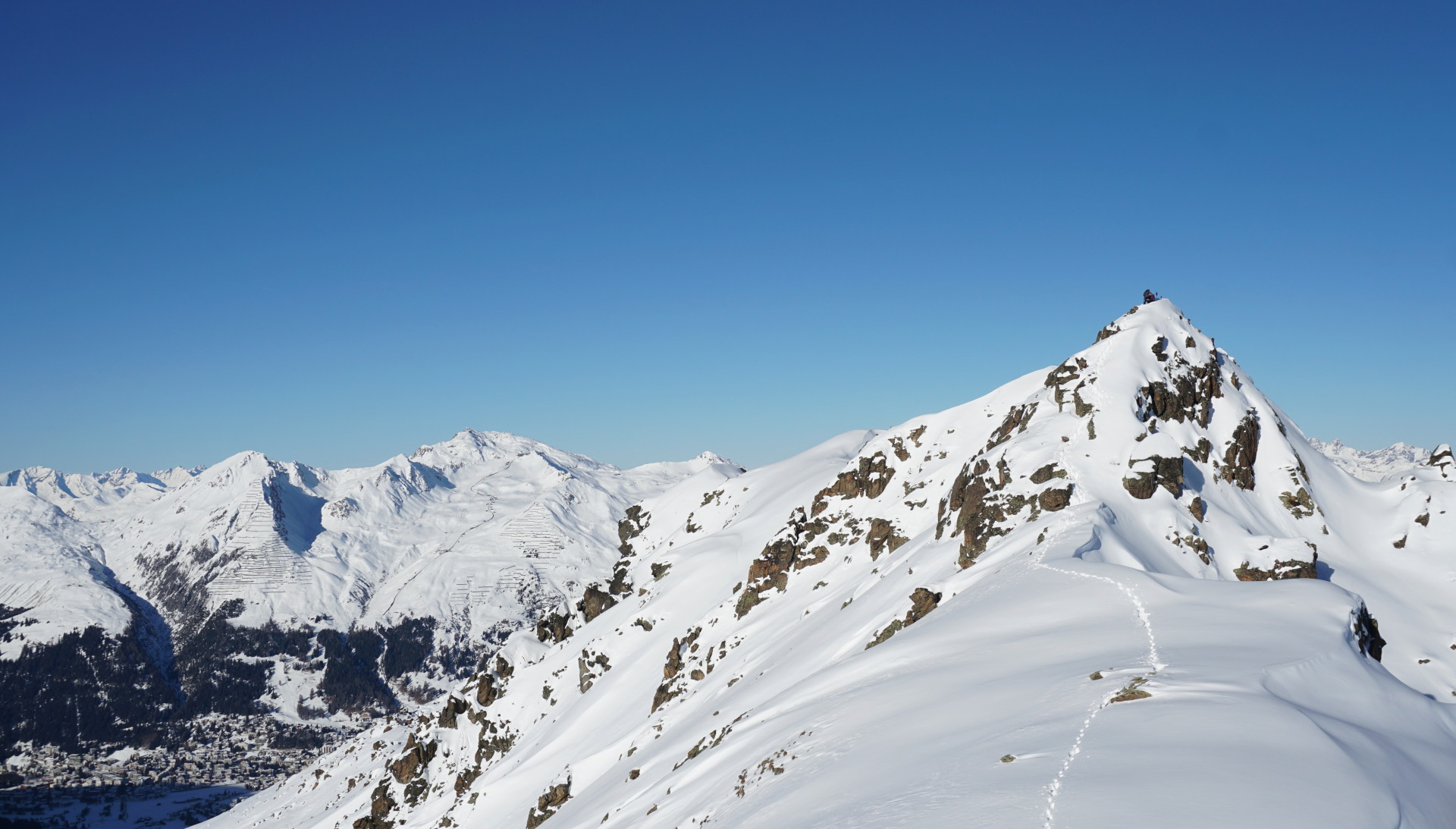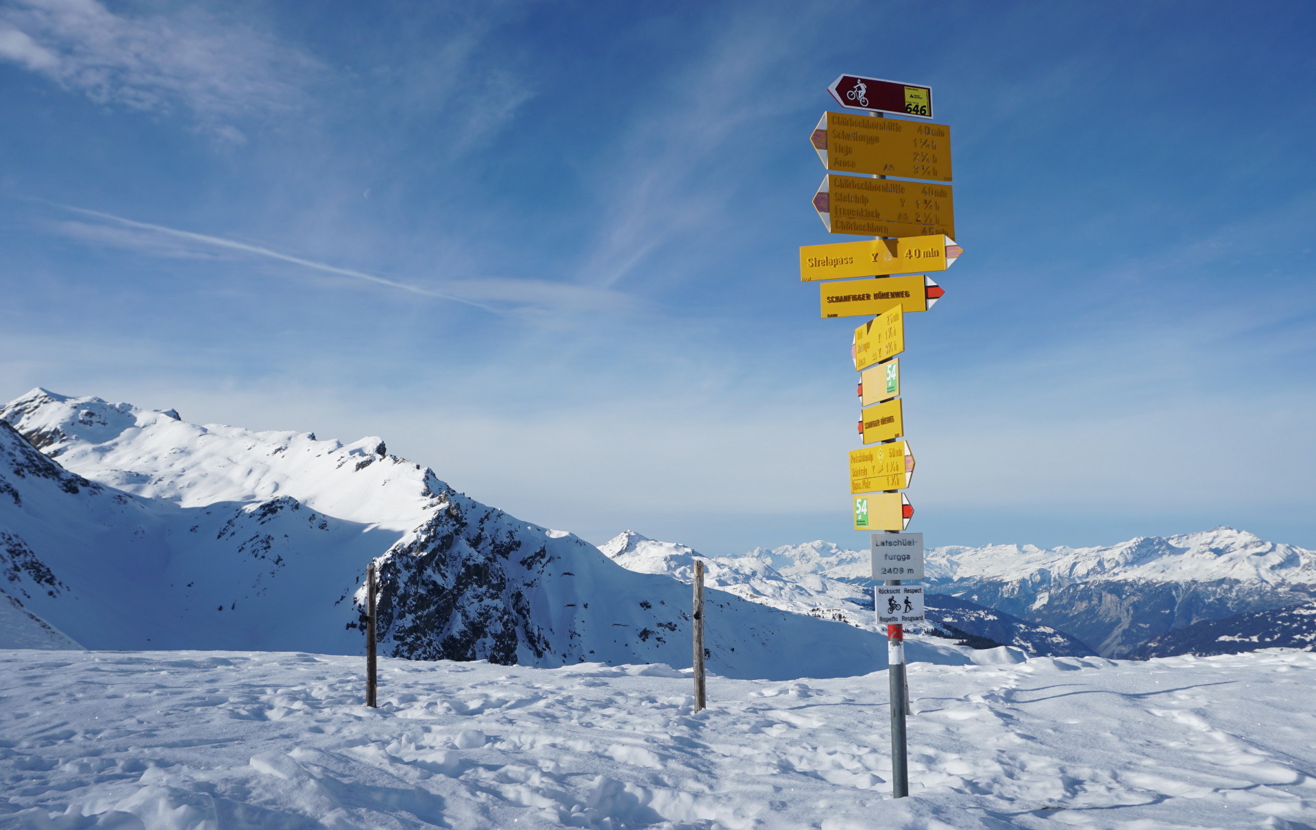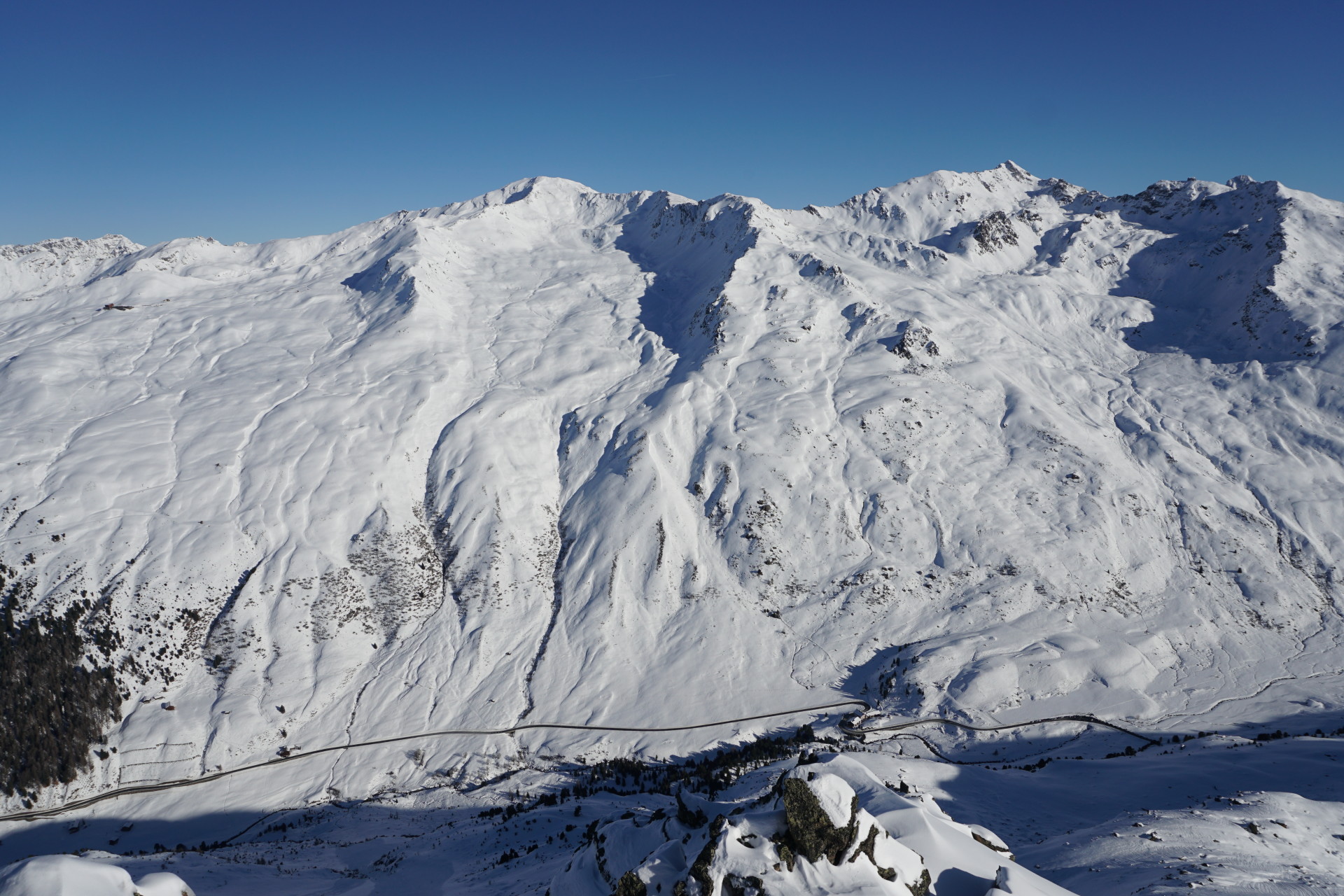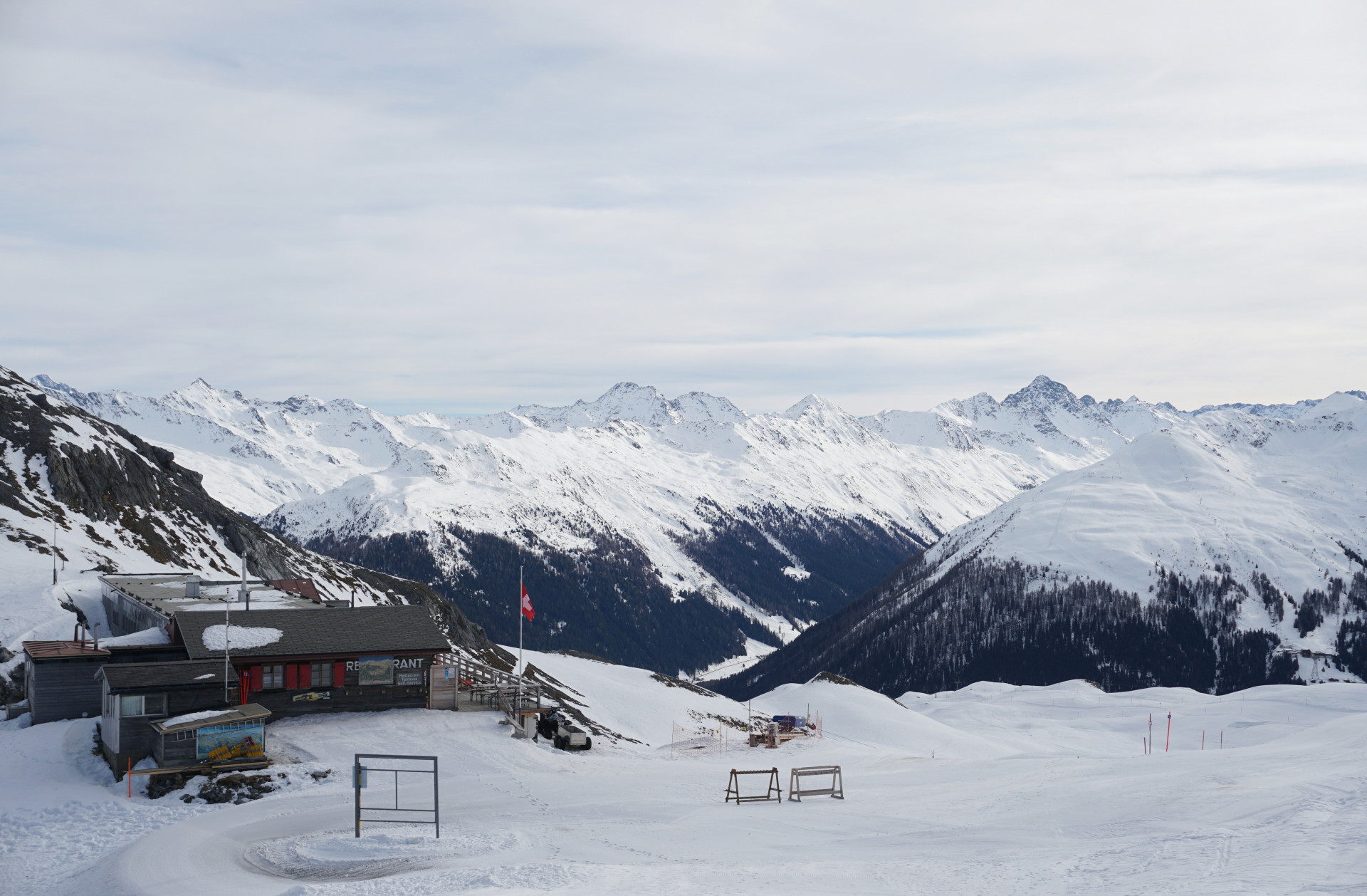 Po pomladnem 1. januarju na smučišču Madrisa, smo šli v nedeljo spet z vzpenjačo na Shatzalp (1861 m). Tam stoji ogromen hotel v švicarskem stilu, ki je že videl boljše čase, višje je še ena dvosedežnica in sidra. Smučišče nekaj časa ni obratovalo, nato ga je kupil zasebnik in spet pognal stare naprave. Čeprav ni nič kaj mikavno za smučanje po progah, vsekakor glede na siceršnje švicarske standarde, je pa zanimivo izhodišče za okoliške vrhove.