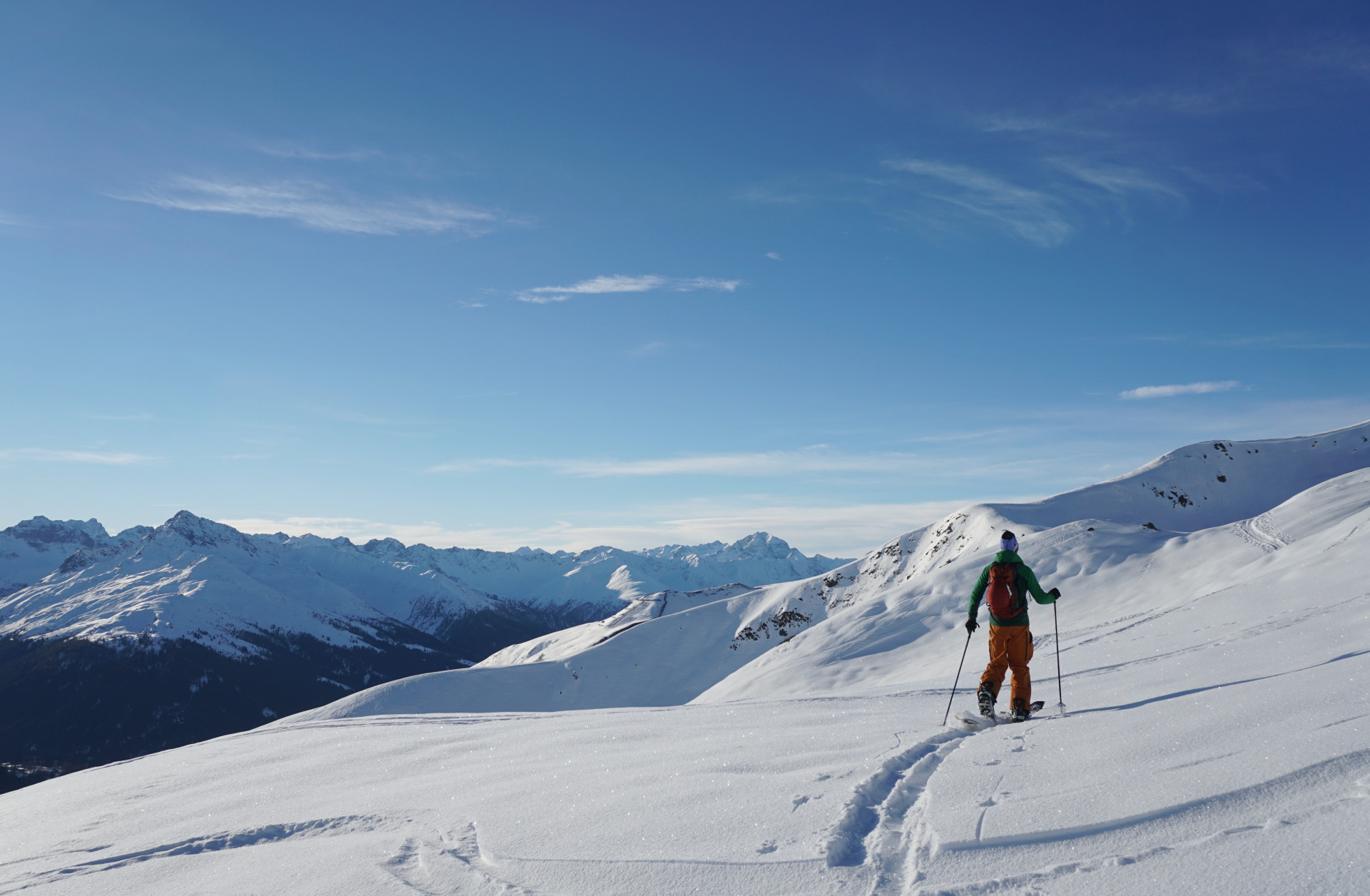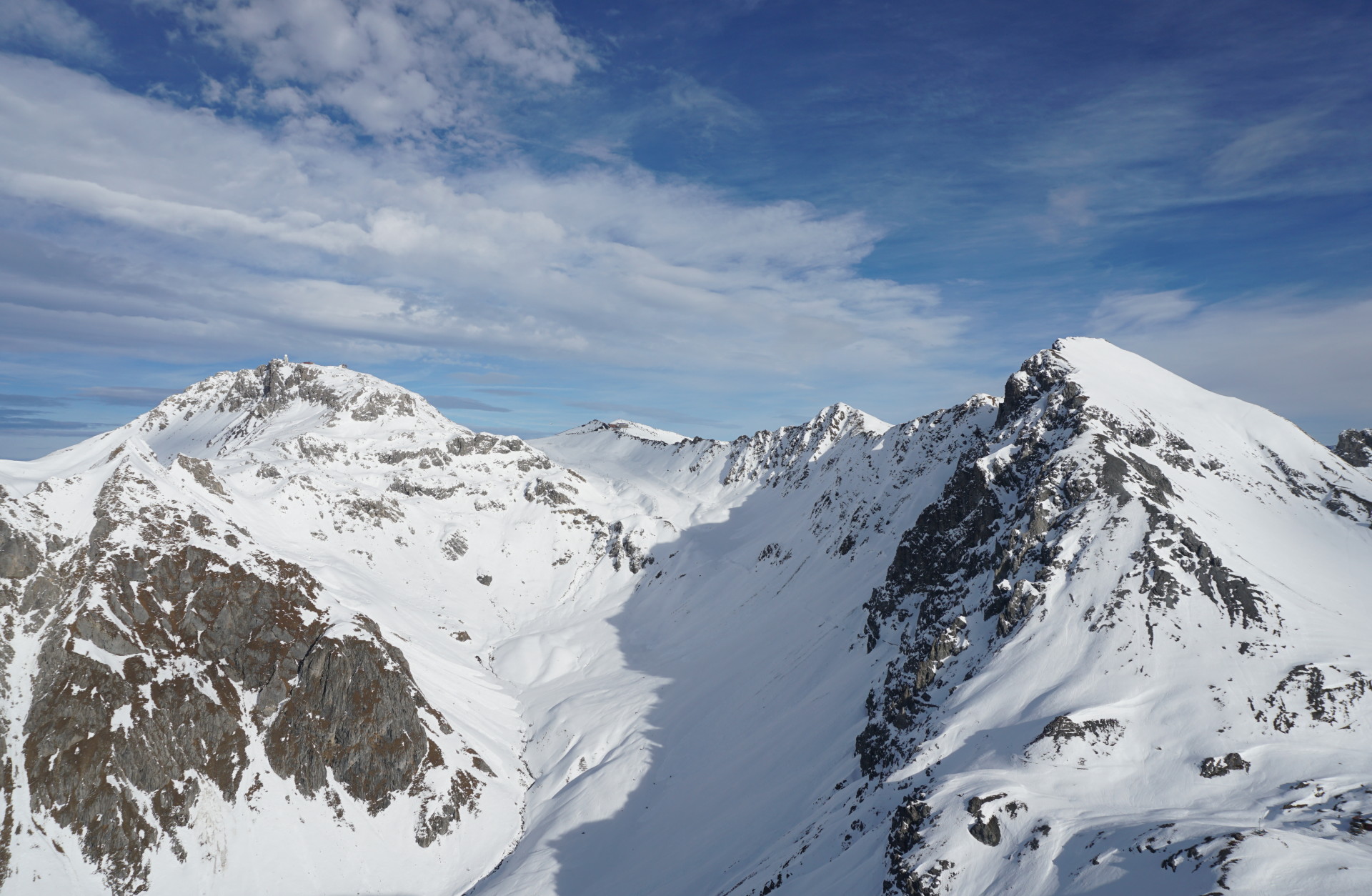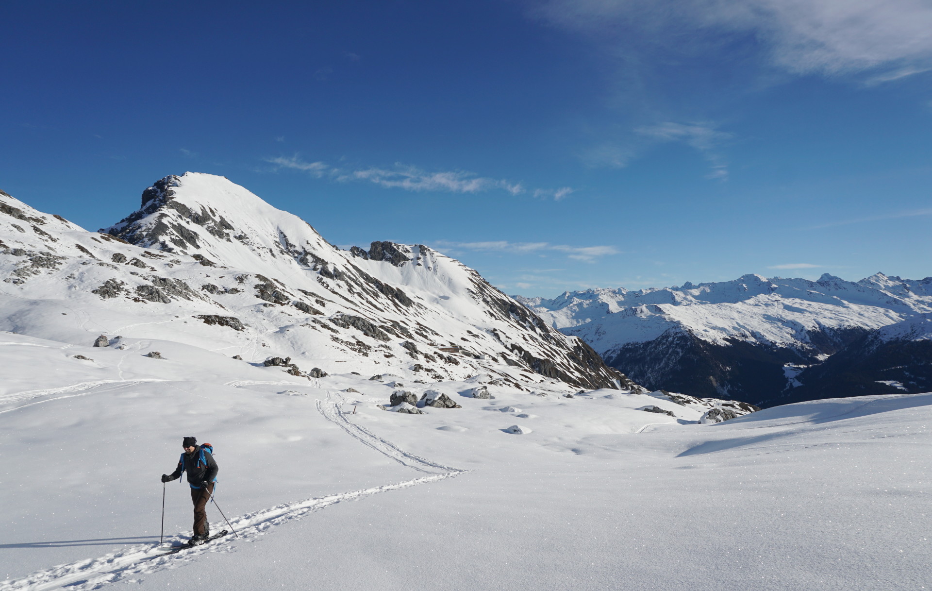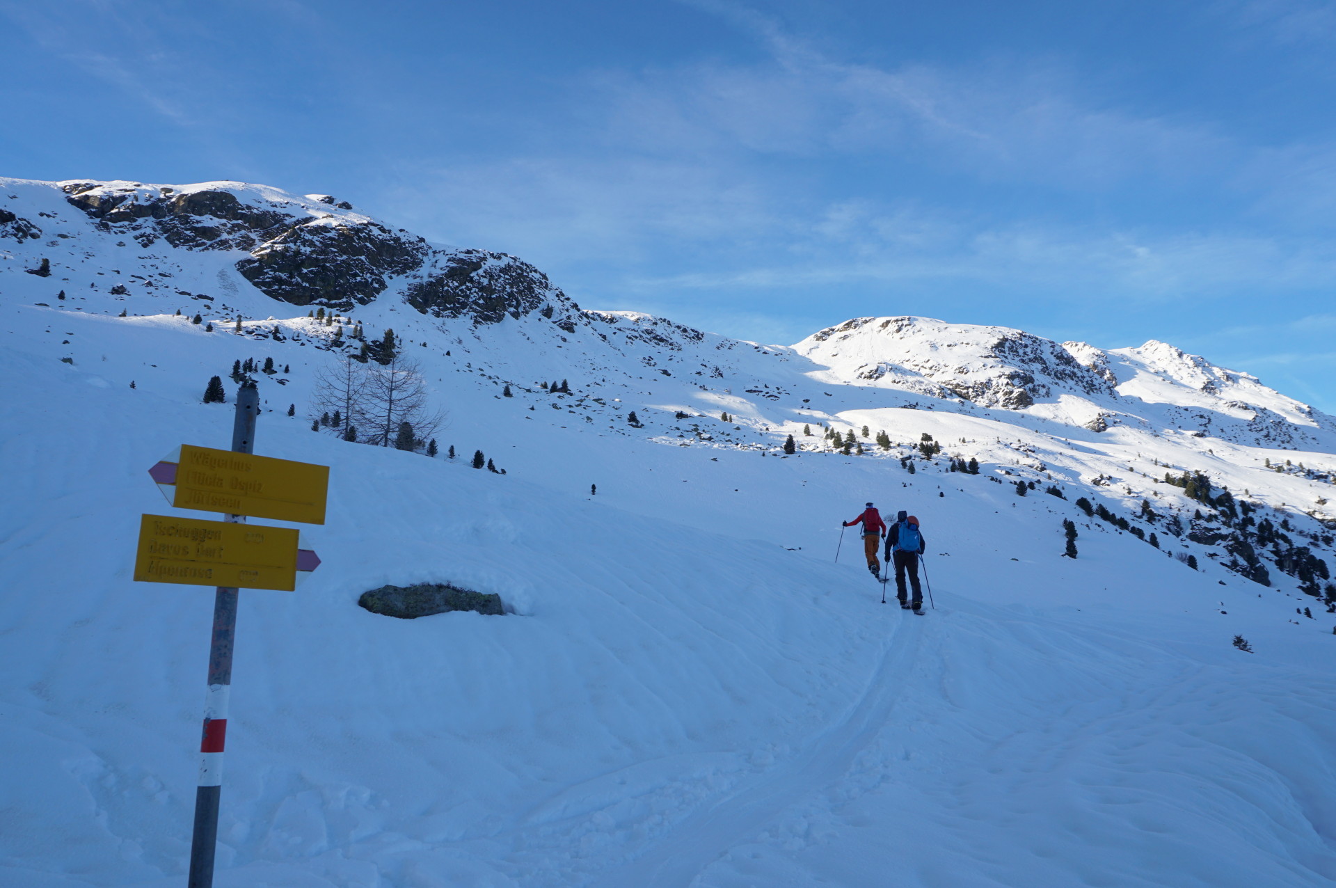 Po pomladnem 1. januarju na smučišču Madrisa, smo šli v nedeljo spet z vzpenjačo na Shatzalp (1861 m). Tam stoji ogromen hotel v švicarskem stilu, ki je že videl boljše čase, višje je še ena dvosedežnica in sidra. Smučišče nekaj časa ni obratovalo, nato ga je kupil zasebnik in spet pognal stare naprave. Čeprav ni nič kaj mikavno za smučanje po progah, vsekakor glede na siceršnje švicarske standarde, je pa zanimivo izhodišče za okoliške vrhove.