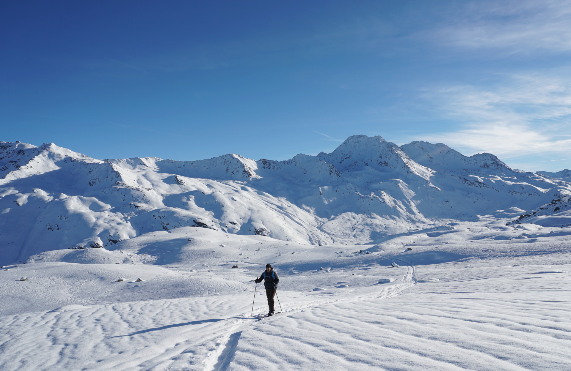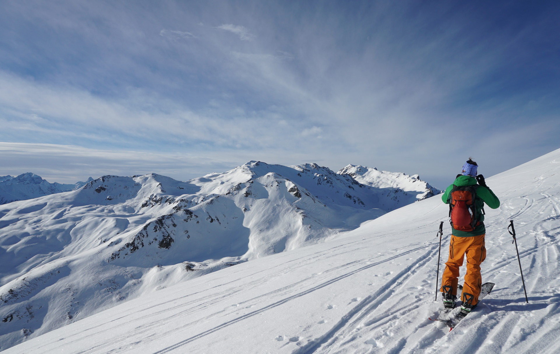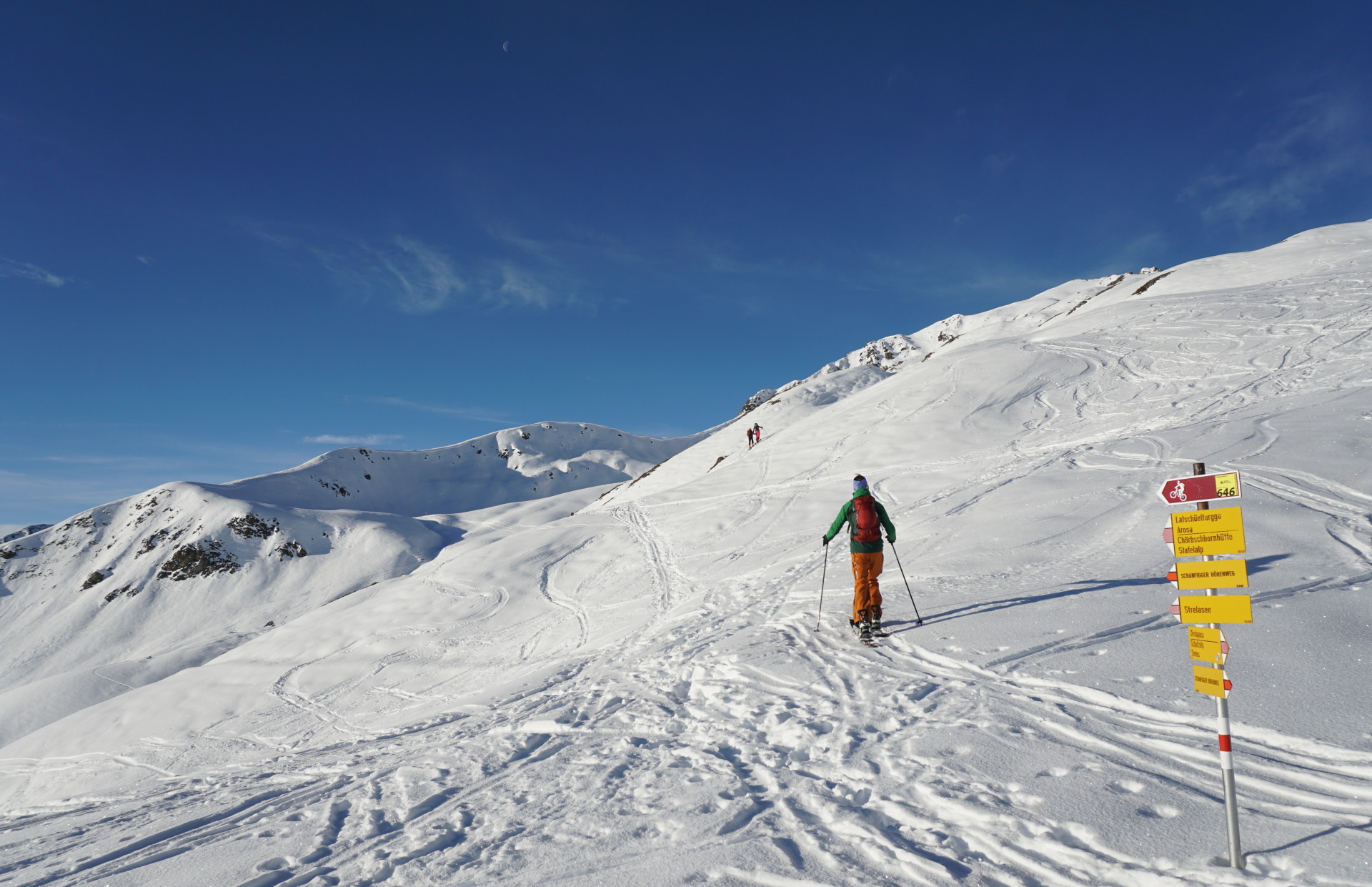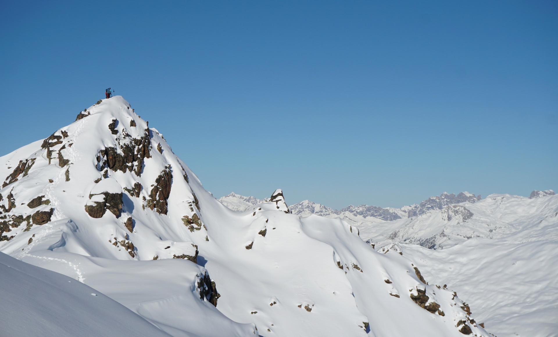 Po pomladnem 1. januarju na smučišču Madrisa, smo šli v nedeljo spet z vzpenjačo na Shatzalp (1861 m). Tam stoji ogromen hotel v švicarskem stilu, ki je že videl boljše čase, višje je še ena dvosedežnica in sidra. Smučišče nekaj časa ni obratovalo, nato ga je kupil zasebnik in spet pognal stare naprave. Čeprav ni nič kaj mikavno za smučanje po progah, vsekakor glede na siceršnje švicarske standarde, je pa zanimivo izhodišče za okoliške vrhove.