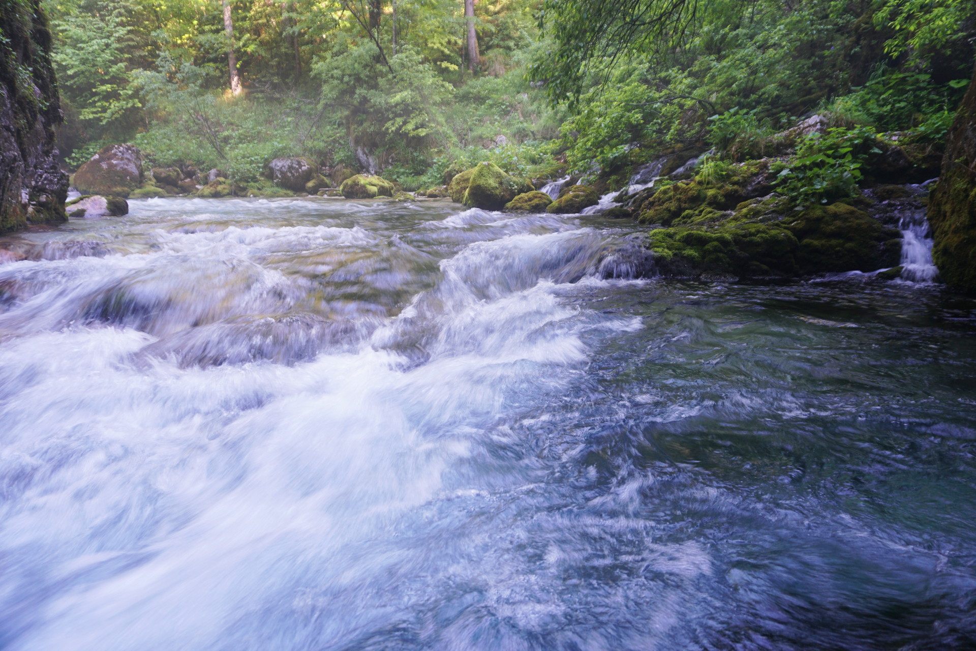 Ko se človek naveliča mraza, vetra in snežnih metežev (več o tem v prihodnji objavi), je čas za bolj umirjen izlet. In ker ni bilo volje za zgodnje vstajanje in dolgo hojo, sem raziskoval lepote v dolini, kjer sem že ničkolikokrat bil, pa nikoli ni bilo časa ob stalnem hitenju v hribe. Vseeno sem bil tam že zjutraj, ko je nizko sonce ustvarjalo še posebno čarobne motive. Najprej sem se sprehodil okoli jezera pri izviru Kamniške Bistrice, nato pa dolvodno do slikovite soteske Predaselj. Odlična ideja za vroče poletne dni.