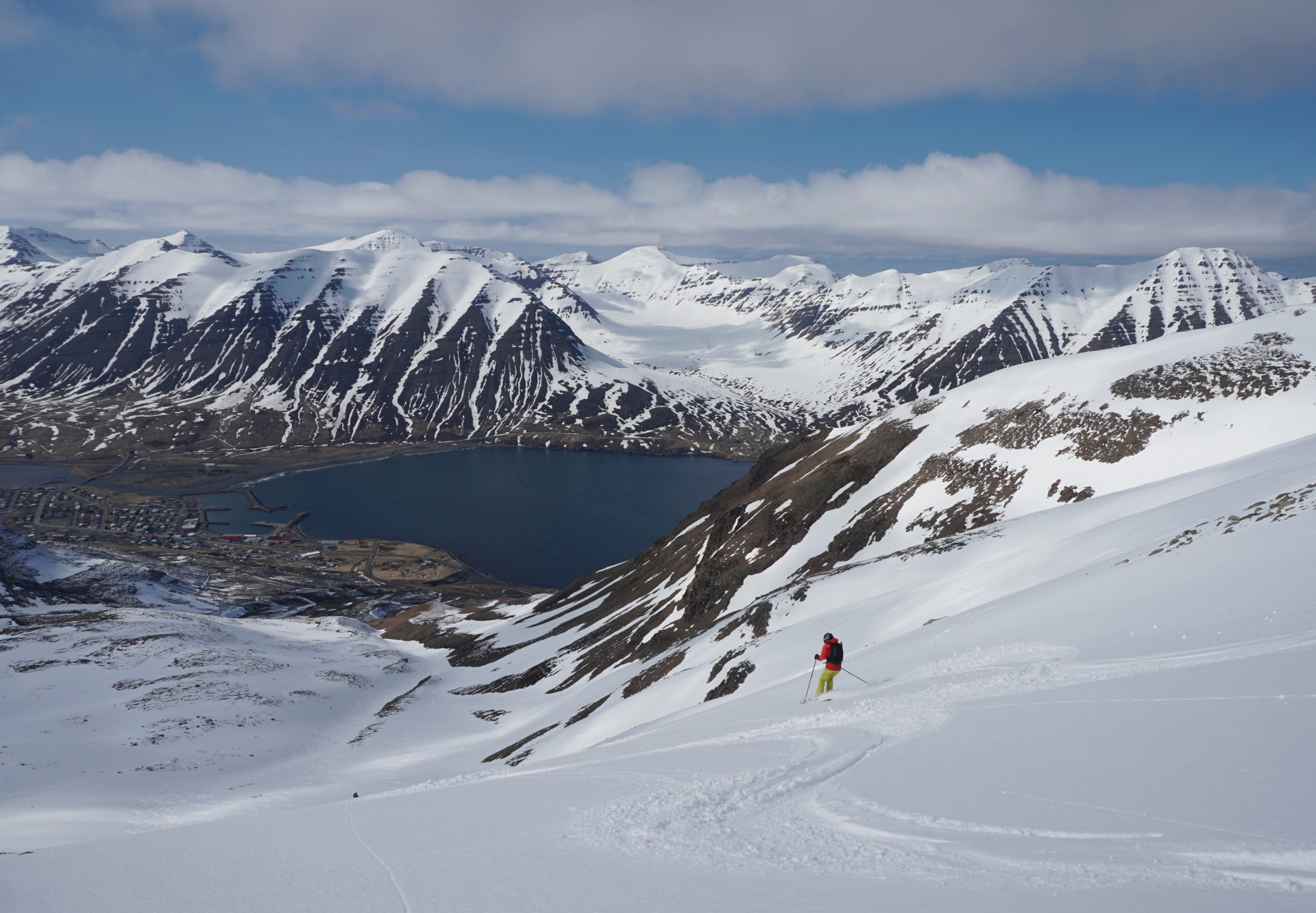 Po drugi strani pa je bila letošnja zima tudi na Islandiji bolj skromna s snegom in pogled od morja navzgor ni bil najbolj obetaven. K sreči se je izkazalo, da so bile smučarske razmere kakšnih 200 – 300 metrov višje odlične in tudi izhodišč s snežnimi jeziki, ki so segali do ceste, je bilo dovolj – le najti jih je bilo treba. Izbire tur je bilo tako nekaj manj, za teden dni še vedno več kot bi zmogli prehoditi in presmučati. Doma smo seveda razmišljali tudi o kakšnem drugem, še ne poznanem delu otoka; na koncu smo presodili, da je turnosmučarsko najbolj zanimiv polotok Tröllaskagi, tam pa najboljše izhodišče Dalvik.