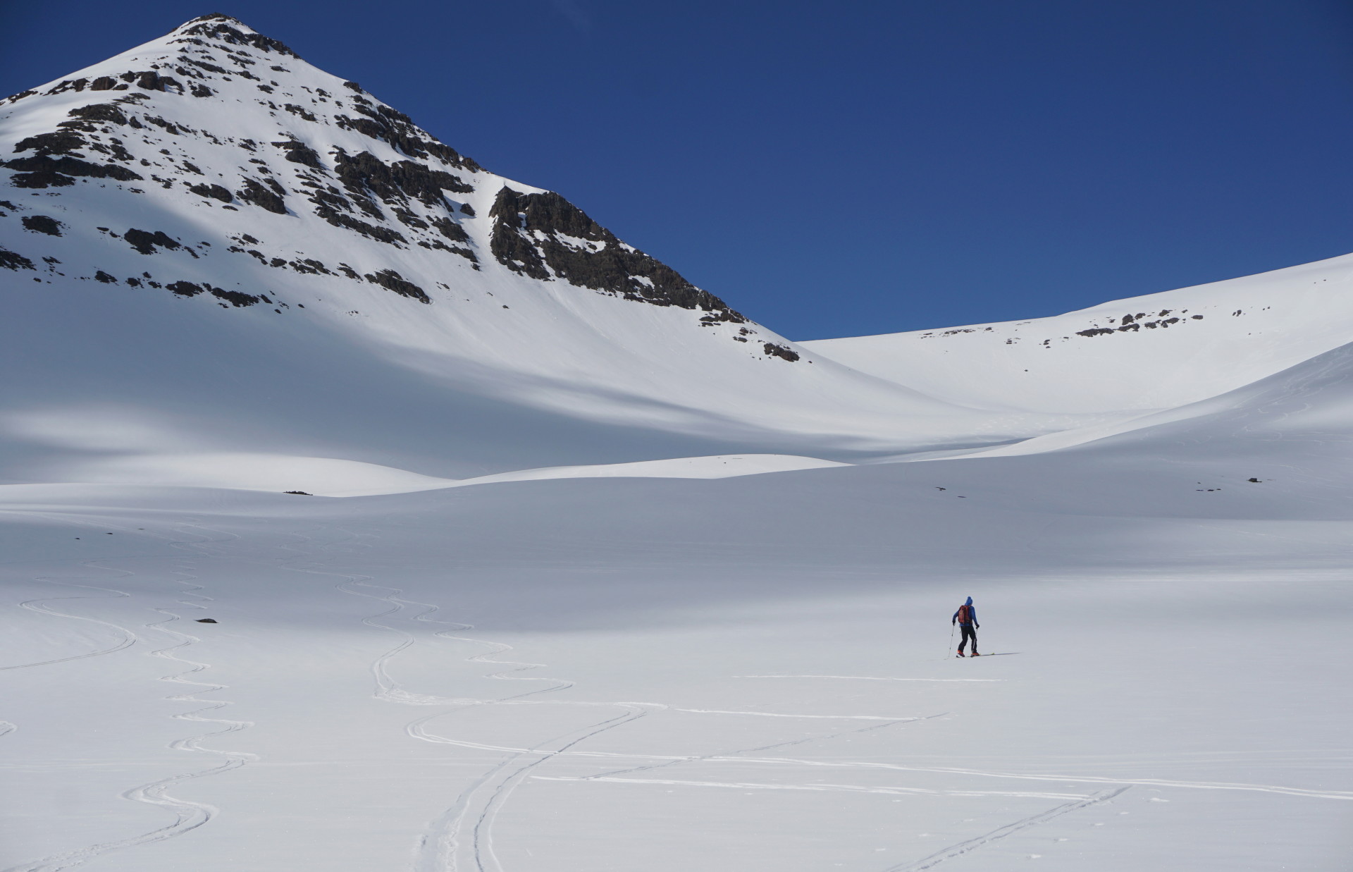 Zaradi vetra nismo dolgo uživali v razgledih in kljub več možnostim spusta smo se odločili za povratek po smeri vzpona. Smučanje je bilo več ali manj odlično v krasnih pomladanskih razmerah – da ne govorim o samotnih širjavah in razgledu na morje. Z dna doline smo se ponovno vzpeli na nasprotno stran do vrha smučišča in po progi do avta. Po začetnih dvomih smo torej prvi dan zaključili nad pričakovanji. Smučarske užitke smo seveda vsak dan dopolnili z razvajanjem v vroči kopeli z lokalnim pivom in okusnimi večerjami. Po takih dnevih ni bilo težko spati kljub svetlim nočem.