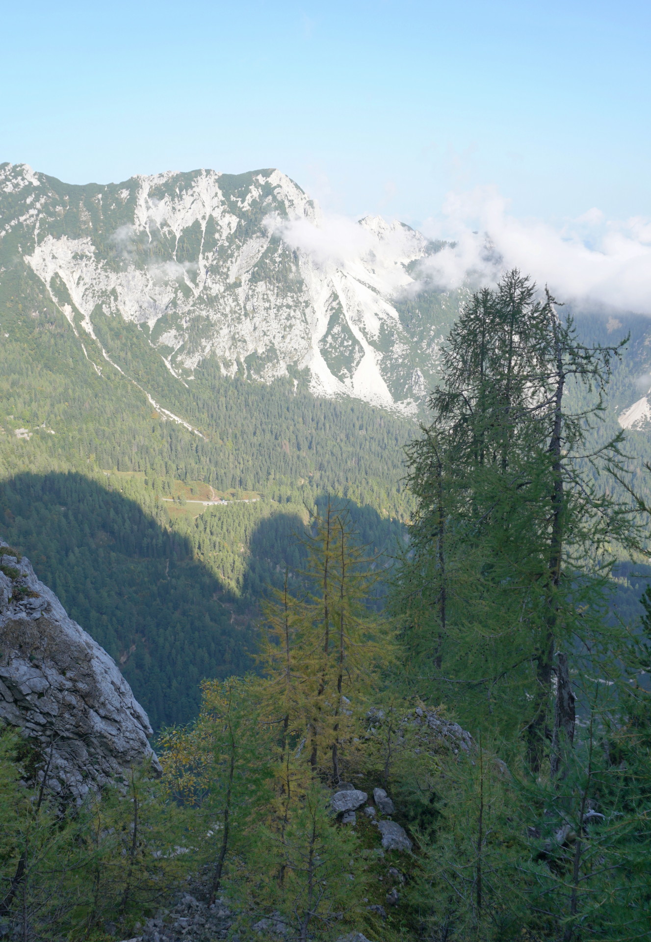 Tam sva si malo oddahnila na travnatih pobočjih pod veličastnim Razorjem, nato pa zakorakala po prečni poti nazaj proti zahodu. Pot je predvsem dolga, a tudi razgibana, razgledna in – sončna. Pravo nasprotje temačnemu in resnobnemu svetu na severni strani. Praviloma bi morala prečiti vse do Vršiča in nato sestopiti do Koče na Gozdu, kjer sva začela. Pa sva se raje namenila poiskat stezo do Kranjske planine, ki je sprva bolj kot ne shojena trava, pod planino se nato v lepih okljukih skozi gozd vije udobna mulatjera in pripelje naravnost do 29. ovinka vršiške ceste. To je očitno povsem na drugi strani od izhodišča, zato sva se tja vrnila na štop; k sreči sta naju kmalu pobrala dva somišljenika in krog je bil sklenjen. Vsekakor tura vredna ponovitve.