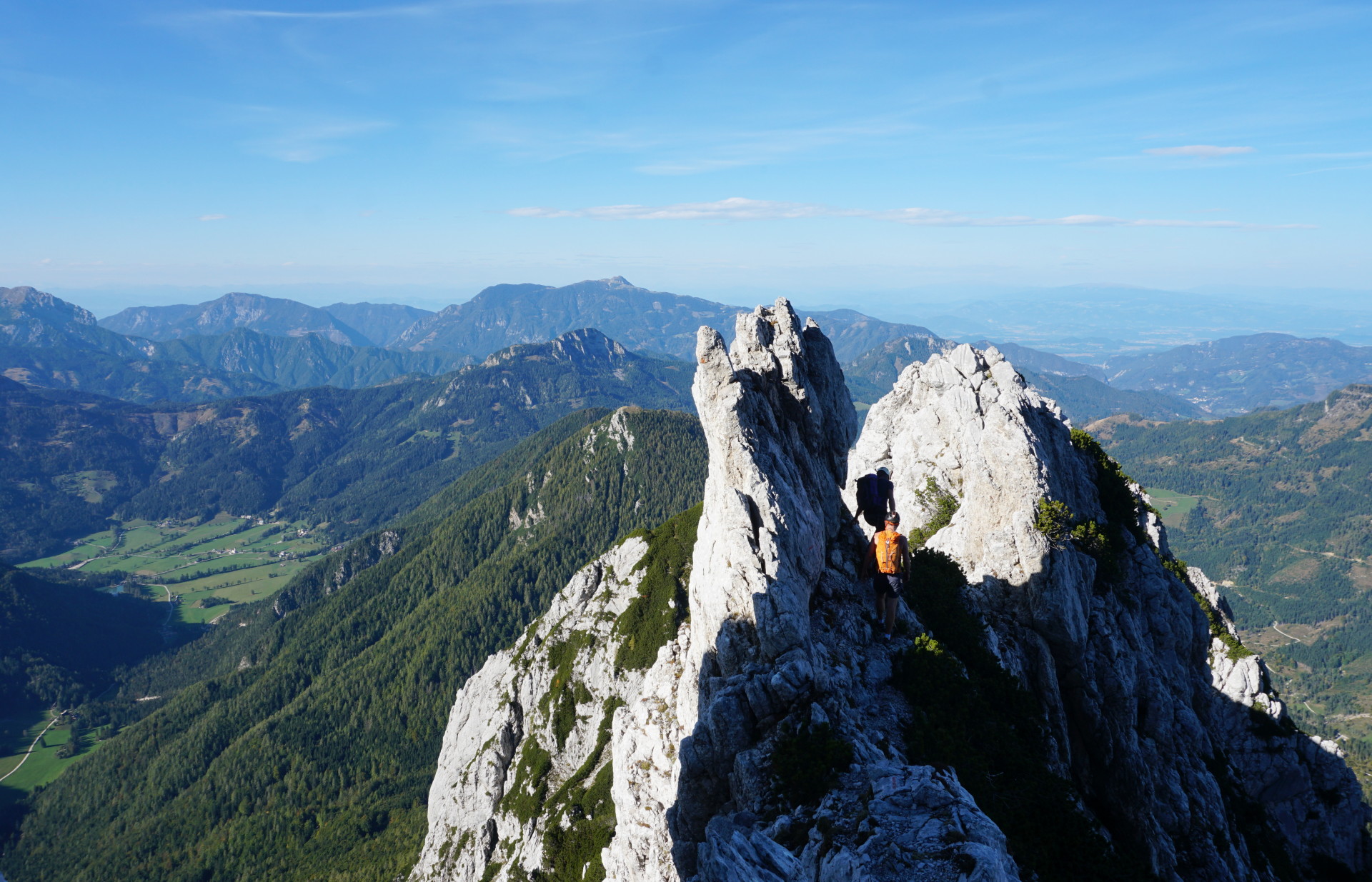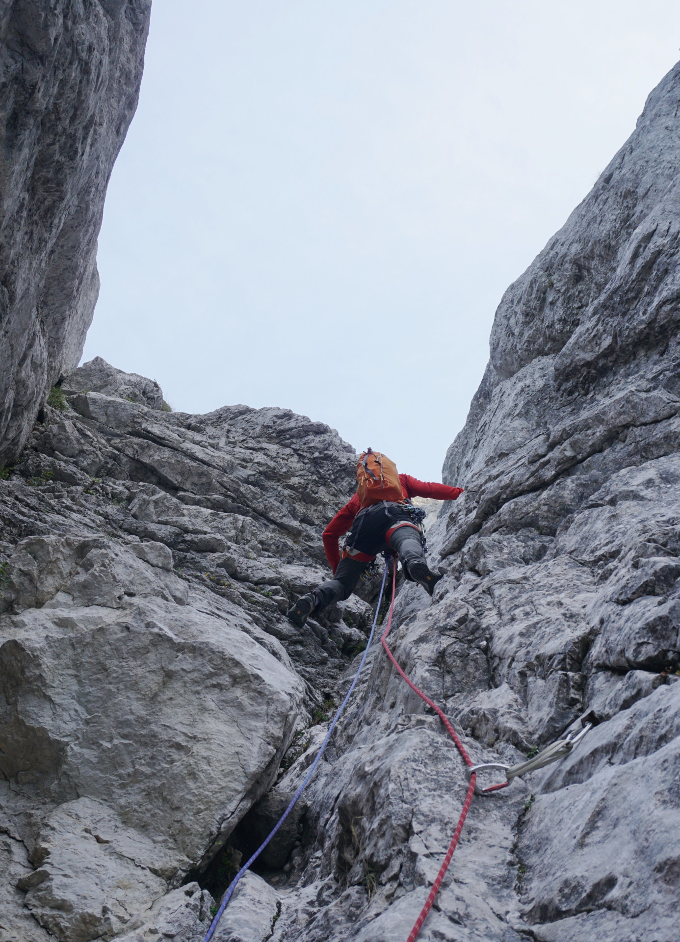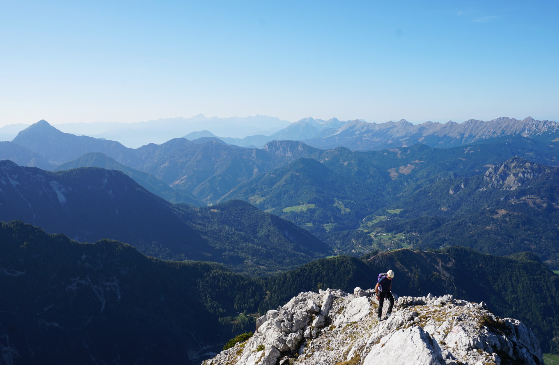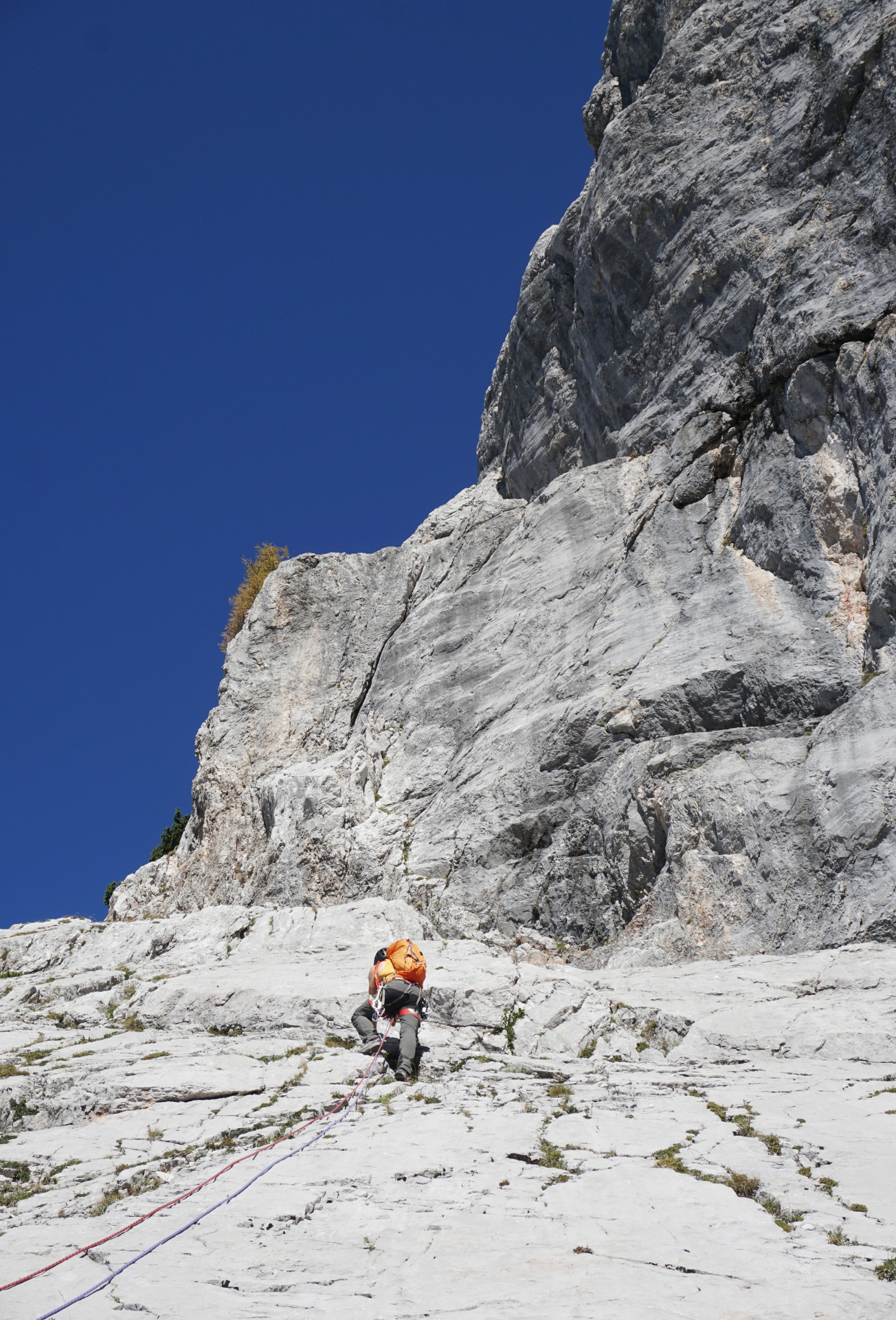 Končno se v hribih kažejo znaki jeseni in gozdovi v Ravenski Kočni se počasi barvajo v bolj pisane odtenke. Tudi jutranja temperatura 3°C na Jezerskem nas je malce presenetila. V resnici pa so razen tega razmere bolj poznopoletne kot jesenske. Temu primerno smo se odločili za Novo Centralno smer (IV+, 700 m) v zahodni steni Koroške babe. Večji del smeri je bil dopoldne v senci, kjer je bilo prav prijetno, višje na soncu pa že kar vroče. Kljub idealnim razmeram smo bili v smeri sami in celo na vrhu (pravzaprav na celi poti) nismo srečali nikogar. Tako smo se lahko posvetili uživanju lepega dne v vedno lepih krajih.