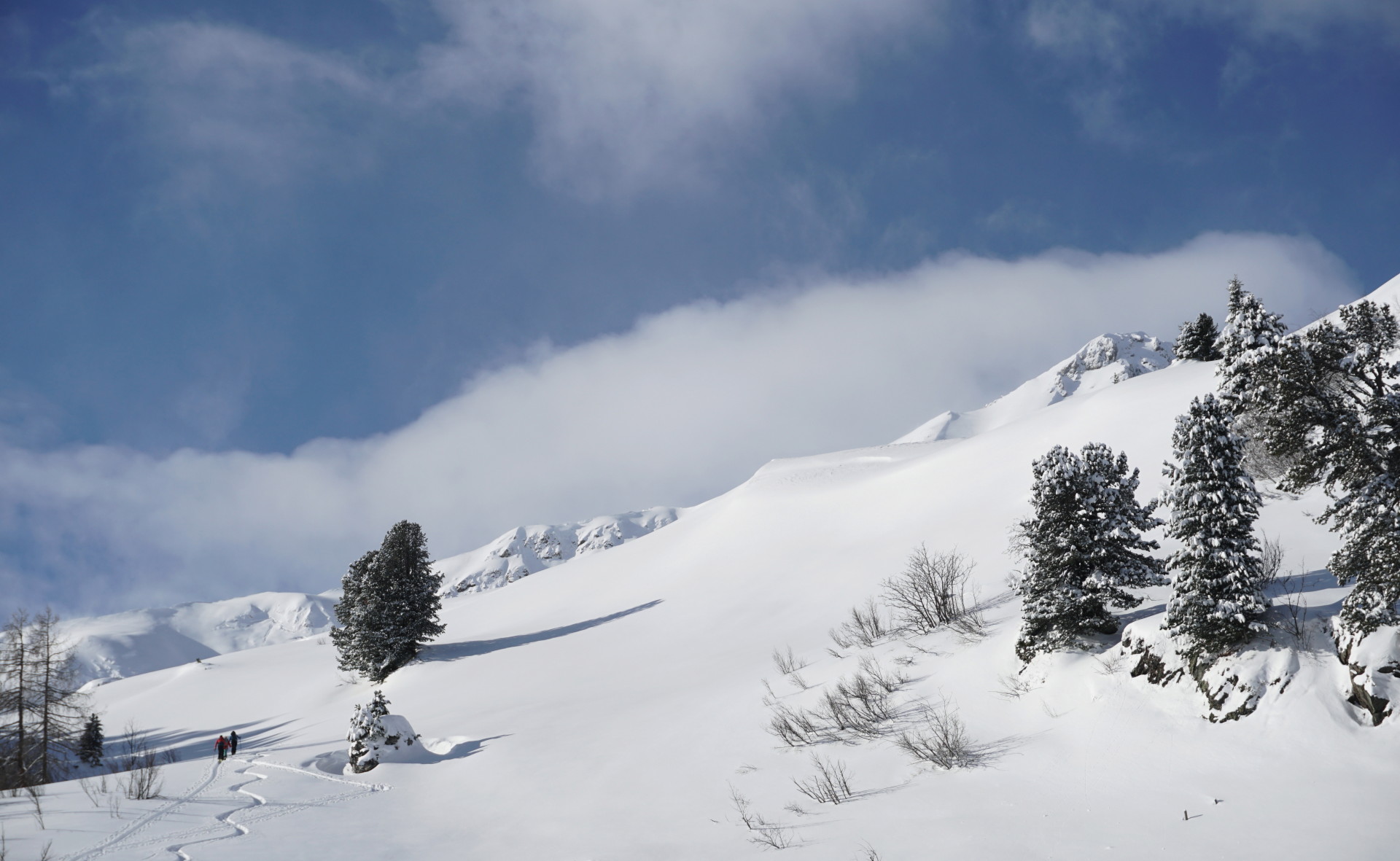 Morda smo bili novembra še v dvomih, a zdaj je jasno: zima je prišla! Žal predvsem na severni strani Alp, pri nas bomo še potrpežljivo čakali – vmes pa ne škodi, če kdaj skočimo pogledat k sosedom. Res je nekaj več vožnje, zato velja čim bolj izkoristiti dan. Izbira ture je bila prav posrečena, verjetno smo tudi malo pogrešali zimske radosti: pršič, sonce in mraz, tako kot mora biti!