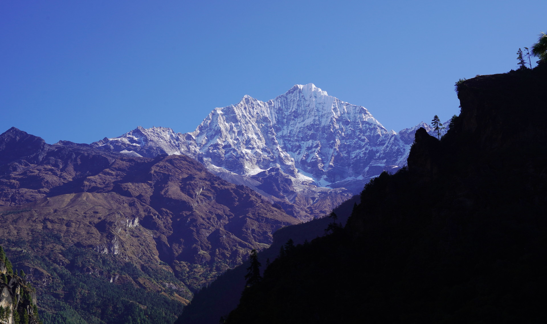 Prve dni višina še ni bila težava, smo se pa morali zadrževati, da se nismo preveč naprezali in smo čim več pili, da bi telesom olajšali aklimatizacijo. Ta dan smo imeli kar precej vzpona (sploh zaradi vseh vmesnih spustov!), ampak bili smo dobro naspani in polni pričakovanj ter navdušenja nad okolico. Dolina je v tem spodnjem delu precej poseljena in manjši ali večji zaselki si sledijo skoraj nepretrgoma, vmes pa obdelana polja in lepo urejeni vrtički. Življenje tu gotovo ni lahko, a domačini so delavni in stalno zaposleni – če ne drugega v dolgih zimskih dneh s klesanjem molitev v skale, saj so nas ob poti ves čas spremljale molilne zastavice, molilni mlinčki, pobarvane skale, gomile kamnov z molitvami, stupe in občasni samostani. In seveda: z vzpenjanjem po dolini so se začeli odpirati razgledi na prve visoke vrhove …