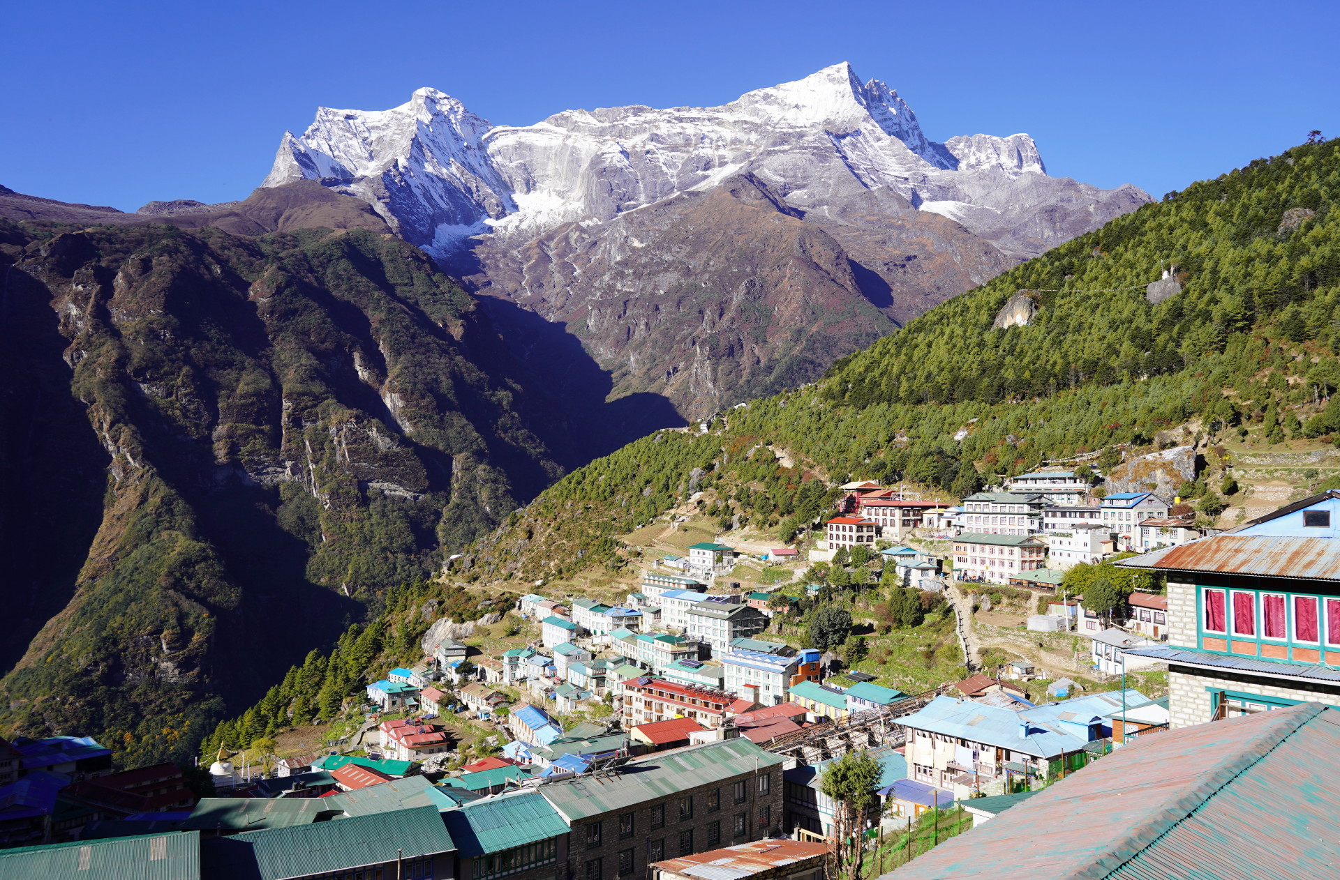 Cilj tega dne je bila “glavna vas” pokrajine Khumbu, Namche Bazaar, ki leži v strmem pobočju visoko nad sotočjem dveh velikih rek, Dudh Kosi in Bhote Kosi. V Namcheju smo predzadnji dan tudi sklenili krog in se ponovno vsi zbrali pred povratkom v Luklo. Na začetku pa smo tu prespali dve noči, kar je bilo nujno za aklimatizacijo, saj smo spali kar 800 metrov višje kot prvo noč. V vsakem primeru je bilo dobro imeti nekaj časa za počitek, posebno v tako prijetnem in živahnem mestecu.