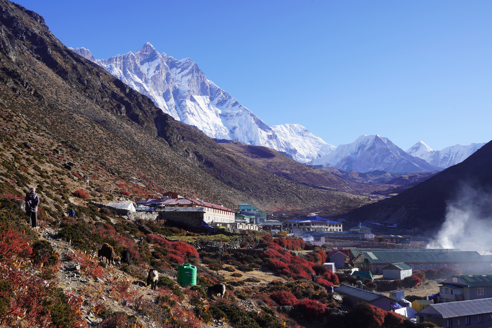Morda sem prehitro napisal, da ni več daleč. Do Lukle smo imeli namreč še dve zelo dolgi etapi, čeprav smo se po osmih dneh končno spet spustili pod 4000 metrov in je bilo vse lažje, z našo aklimatizacijo že prav lahkotno. Pred zajtrkom sem se malo razgledal po dolini, ki se nadaljuje še daleč na sever vse do slovitega prelaza Nangpa La (5716m), nekoč najpomembnejšega prehoda iz Tibeta v Nepal, preko katerega so predniki Šerp iz Tibeta tudi poselili pokrajino Khumbu. Danes Kitajska ne dovoli več prehoda Tibetancem, tako kot uspešno ovira prehod informacijam o dogajanju v Tibetu. Že leta 2006 je tudi Pavle Kozjek po solo prvenstvenem vzponu na Cho Oyu fotografiral poboj Tibetancev na tem prelazu.