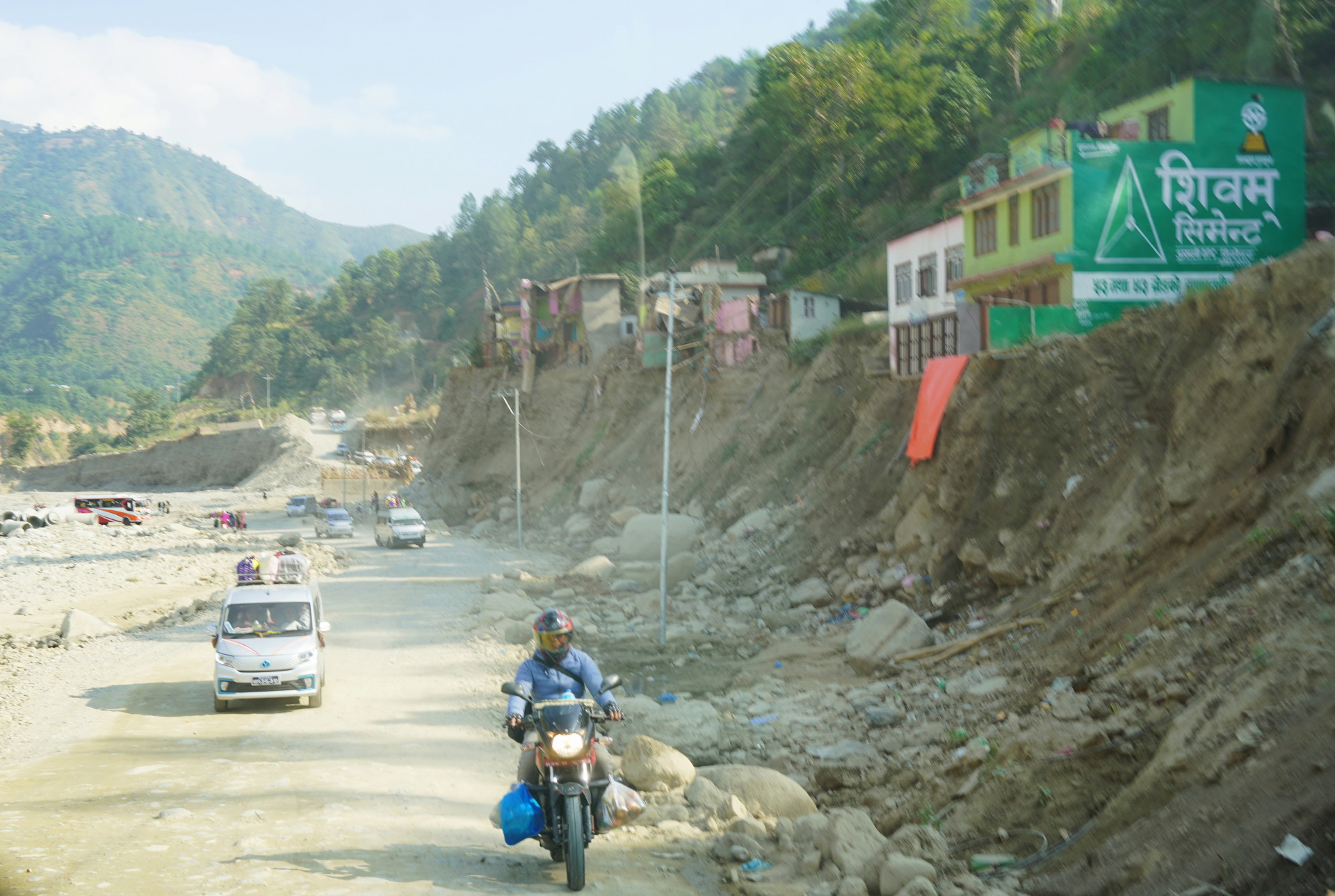 Kakorkoli, po pristanku v Ramechapu smo se naložili v kombije in se odpeljali po glavni cesti do Katmanduja. Sprva je šlo dokaj lepo in veseli smo bili, da ne rabimo ponoviti vožnje po obvozu. Po kosilu pa smo kmalu dosegli območje, kjer je monsunsko deževje uničilo okoli 25 km ceste (in poleg ceste še vse ostalo v dolini). Zdaj smo nekako razumeli, zakaj se ponoči nismo tam vozili in zakaj je bila cesta še vedno uradno zaprta. No, ta zapora (in nenazadnje sploh neobstoj ceste!) Nepalcev ni pretirano motila in potovali smo v koloni avtomobilov, avtobusov, tovornjakov in motoristov – ki so se seveda ves čas prehitevali. Ko smo končno prevozili ta odsek, nas je čakalo še par ur po običajni cesti (kar po nepalskih standardih pomeni predvsem celo vrsto ovinkov in klancev). Do hotela smo tako prišli šele ob mraku, tako da nismo imeli praktično nič od dneva. Za zaključek nas je agencija povabila na večerjo na prijetno teraso ob živi glasbi. Zrezki so bili sicer rahlo razočaranje, ampak po 14 dneh zelenjave se nismo pritoževali. Kljub lepi priložnosti ob uspešnem zaključku treka pa smo šli zgodaj spat, saj nas je vožnja utrudila še bolj kot vsakodnevna hoja.