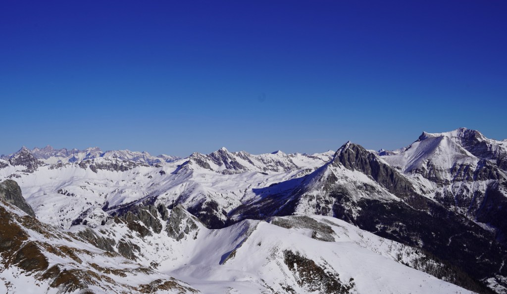 Letos imamo dosti sonca, posledično bolj malo snega. Kljub tako stabilnemu vremenu je sredi tedna na severu zapadlo nekaj snega in ker je Jero v četrtek pošiljal sumljivo lepe slike, smo se šli v soboto prepričat na lastne oči. Vtis med vožnjo ni bil ravno obetaven, v dolini Zederhaus je snega še vedno bolj za okras, vrhovi pa spihani do skal. K sreči je do planine Bartlam cesta, ki je dovolj zasnežena – in se k sreči tudi lepo vzpenja, da smo se ogreli v tistem zamrzovalniku v ozki dolini.