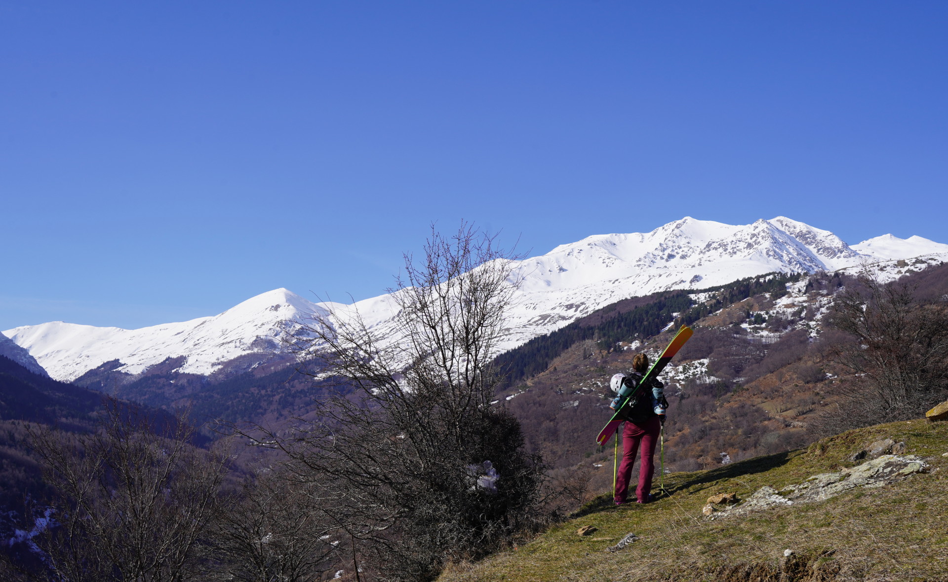 Z vrha na jug je šlo prav lepo, nižje po osojnih pobočjih bolj ali manj trdo, marsikje še dodatno zaradi zvoženih terenov. Tudi tam namreč že nekaj časa ni snežilo, prave pomladi pa vseeno še ni bilo. Kljub dolgemu vzponu in bolj naporni smuki, vključno s krajšim vzponom nazaj do smučišča, sva bila zadovoljna s prvim dnem. V naslednjih sva se tako usmerila na prisojne strani in razmerje med napori in užitki se je ustrezno popravilo.