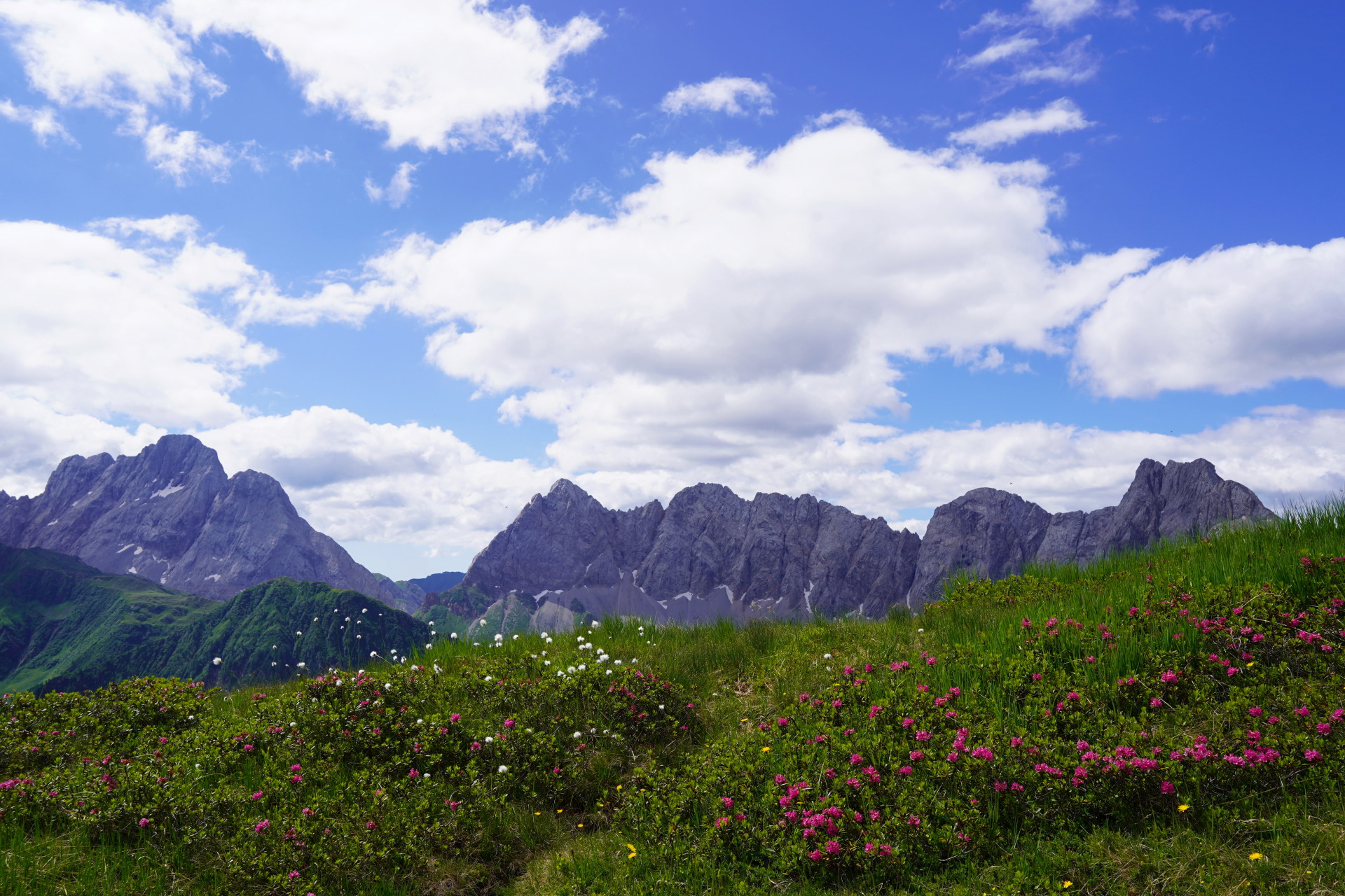 V soboto smo se namenili kar na greben nad našo vasjo, vseeno smo si sicer prihranili hojo po cesti in se zapeljali nekoliko višje do odcepa pešpoti. Skozi lep in bujno zelen gozd smo dosegli travnati greben, poln gorskega cvetja in cvetočega rododendrona. Z Runsecka sem pred nekaj leti že smučal, takrat žal v bolj slabem vremenu, tako da mi je bilo okolje povsem neznano – še posebno razgled je zelo razgiban. Lahkotno pohajanje po grebenu je bilo tako nadvse uživaško, oblaki so skrbeli za popestritev neba – in nekaj zaščite pred močnim soncem.