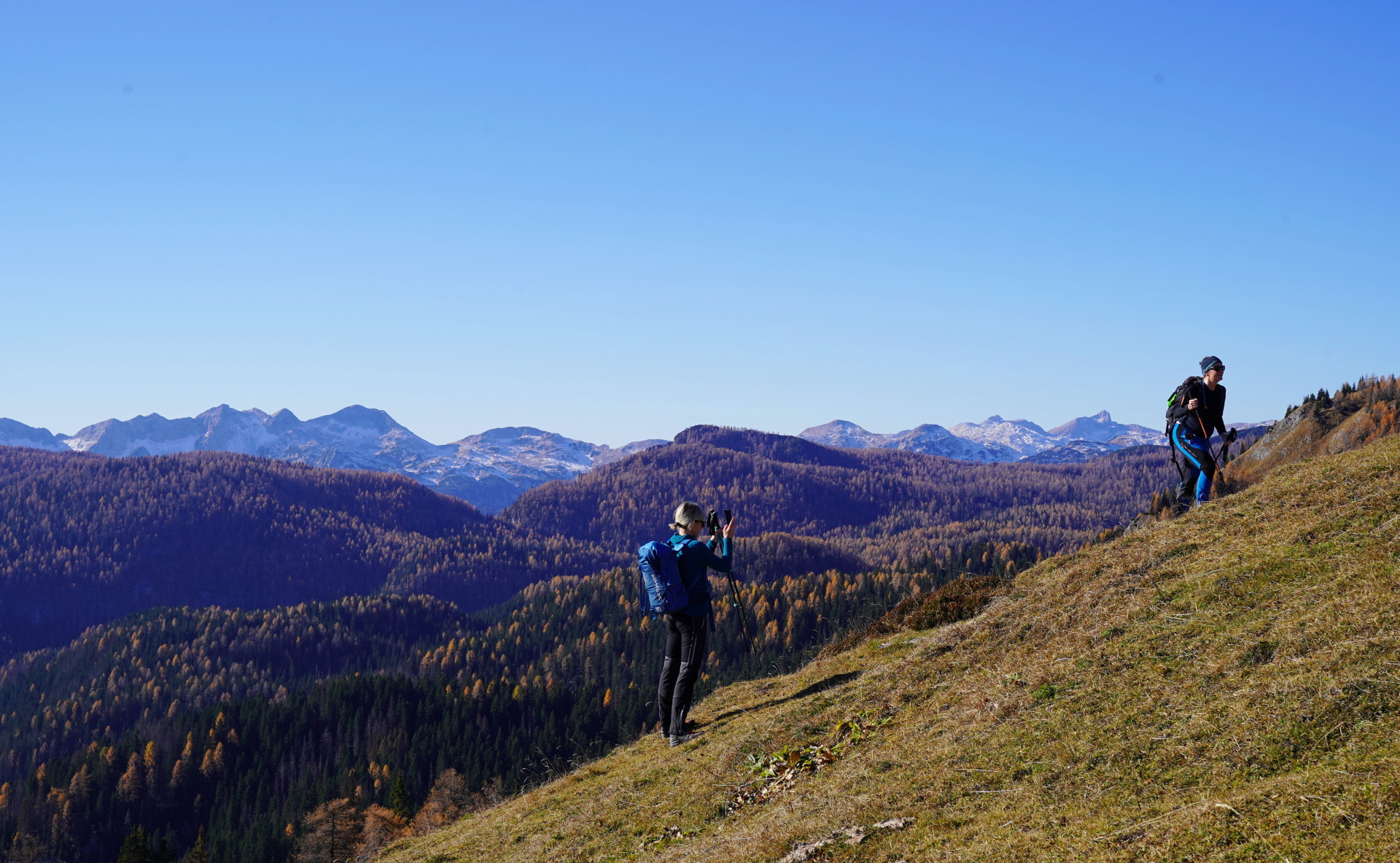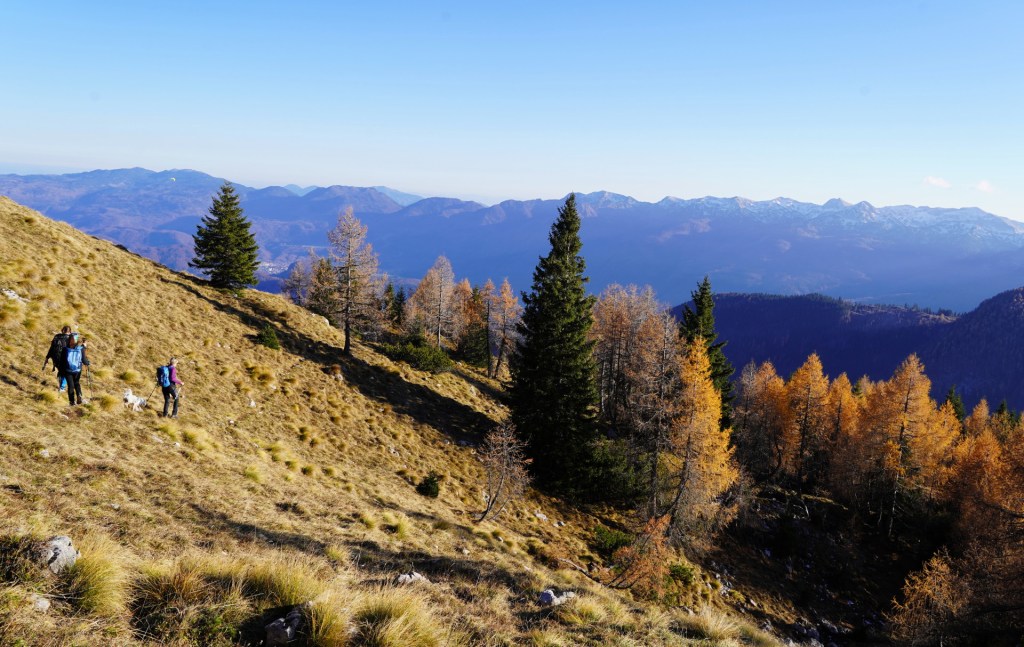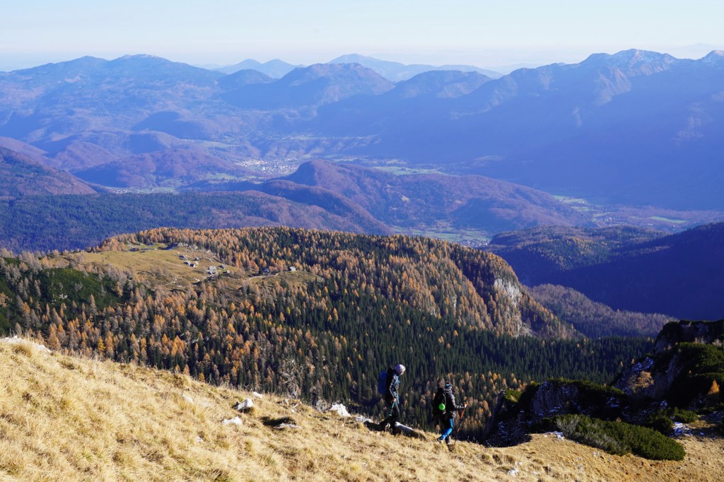 Na Krstenici je vedno krasno, da bi lahko kar tam ostali. Vseeno smo nadaljevali čez Krsteniški na Jezerski Stog, kjer smo spet obsedeli. Na drugo stran je nekaj več spusta na opuščeno planino Jezerce in spet navzgor na Lazovški preval ter po grebenu na Ograde. Tudi s tega vrha se nam ni mudilo, tako da je bila po spustu na drugo stran planina v Lazu že v senci. Sestop do izhodišča je bil tako čedalje bolj hladen, smo pa dodobra izkoristili kratek dan na soncu.