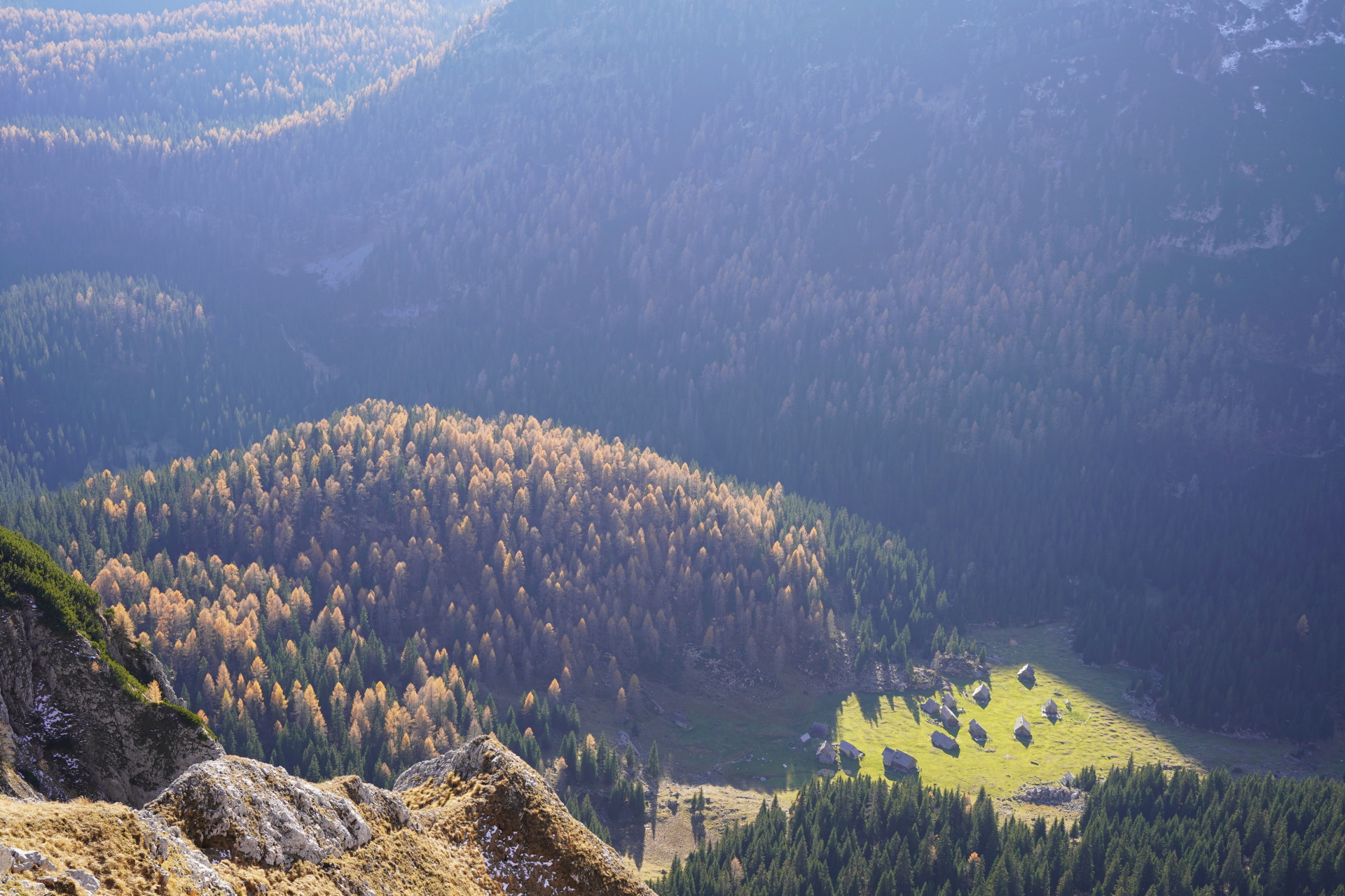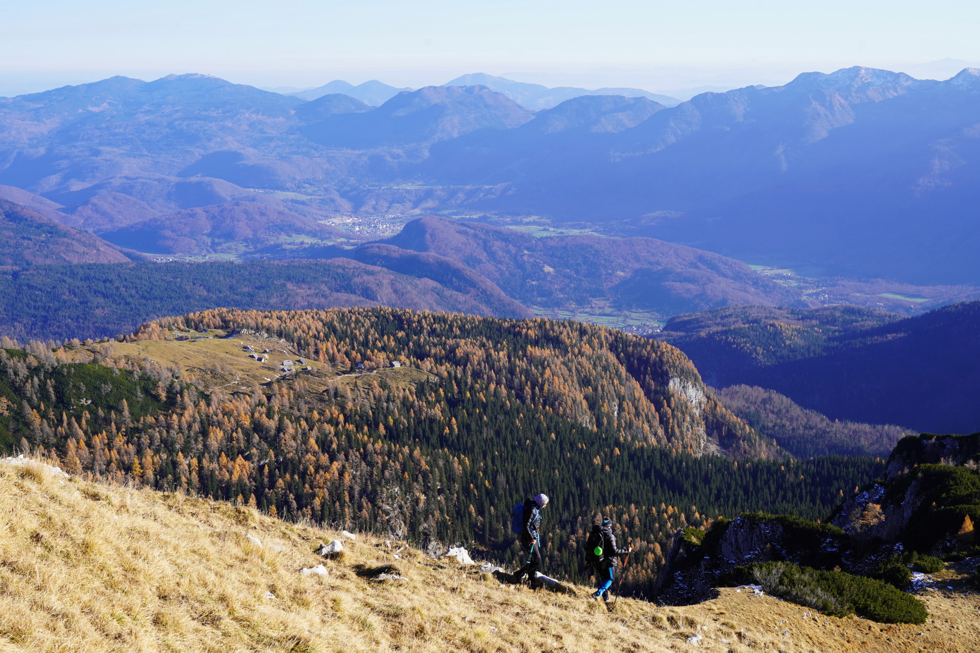Nekatere ture so enostavno preveč uživaške, da bi se jih kdaj naveličal. Ena takšnih je tudi krožna pot čez Stoge in Ograde. Letos smo bili že malce prepozni za najlepše barve, a razočarani gotovo nismo bili. Zanimivo sicer, da je na planoti hladnejša mikro klima kot na primorski strani pa je bilo kljub temu precej manj snega kot prejšnji dan nad Trento, kjer je bilo občutno bolj toplo in opazno bolj barvito.